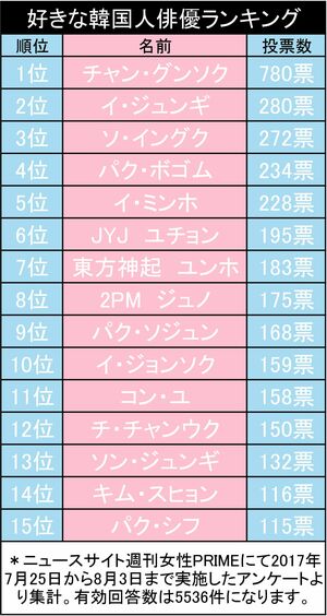 先日、週刊女性PRIMEで発表した『好きなK-POP男性グループ』アンケートの結果が大好評でしたが、続いて『好きな韓国人男性俳優』のランキングをお届けします!