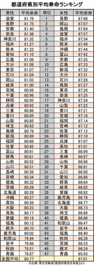 トレンド 2018/1/18 <都道府県別平均寿命>最下位は記録更新中のあの県、『だし活』の成果はいつ!? 健康寿命ランキング 『週刊女性』編集部 印刷 すべての写真を見る facebook いいね X ポスト LINE はてなブックマークに追加 流行の記事一覧を見る タレコミを投稿する 今日の運勢を無料で見る コピーしました