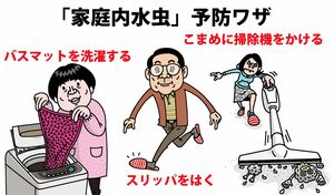 家族に水虫の人がいる場合は、家庭内感染を防ぐため、共用するバスマットなどを清潔に保ち、スリッパをはく、こまめに床掃除をするといった対策が有効です。