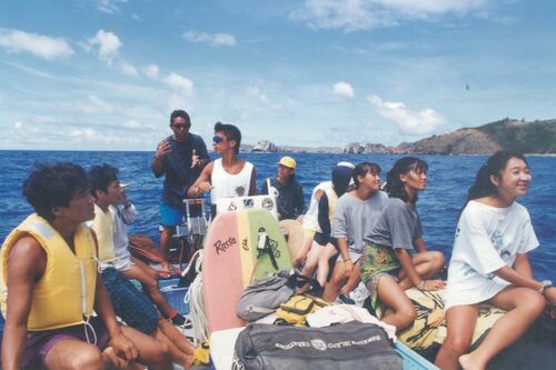 ’82年ごろ、内地や海外からサーファーがやってくるようになった。フランス海軍が使っていた「ゾディアック」というゴムボートを購入し、サーフボードをのせて誰も知らないサーフポイントに案内することも増えた。