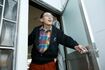 掃除しているところを住民に感謝され、笑顔で応える馬場さん。