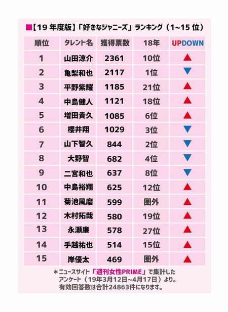 ジャニーズ 2019/5/8 「好きなジャニーズ2019」ついに世代交代!? “平成”のエースが初の1位を獲得 ジャニーズランキング 印刷 「好きなジャニーズ2019」1-15位 ※週刊女性PRIME記事内の画像をクリックすると、2018年のランキングへ飛びます 【写真】最新!2019年好きなジャニーズ1~15位のランキング表、過去のランキング表 facebook いいね X ポスト LINE はてなブックマークに追加 Hey! Say! JUMPの記事一覧を見る タレコミを投稿する 今日の運勢を無料で見る コピーしました