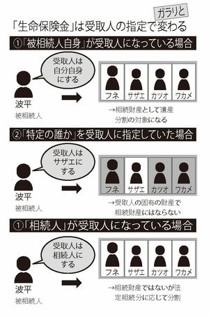 「死亡して財産を相続させる人を『被相続人』、残された財産を相続する人を『相続人』と呼びます。磯野家でいえば、波平が亡くなった場合、波平が被相続人、フネ、サザエ、カツオ、ワカメが相続人となります」