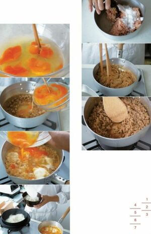鶏そぼろは米の粒子やテクスチャーに寄り添う形状をしています。ポロポロのそぼろに出汁を含ませた卵で一体感をもたせ、ご飯と一緒に食べれば「止まらない」状態になるはず。