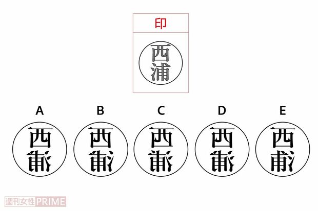 Q5:上の名字「西浦」を押せる印鑑は、下のうちどれでしょうか?