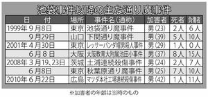池袋事件以降に起こった主な通り魔事件は以下にある表のとおり。
