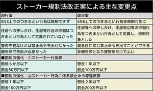 「メールがつきまとい行為に含まれたのは、『逗子事件』が起こった後の2013年の改正です。改正が後手に回ってきた。ただ、今回の改正案には、ストーカーのつきまといとして当面予想されるものが、ほぼ入っている。一定の評価はできます」(前出・紀藤弁護士)