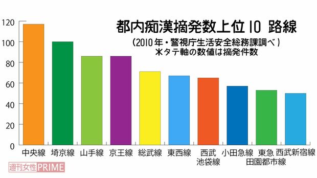 それを裏付けるデータもある。警視庁が2004年と2010年に公表した路線別の痴漢摘発件数によれば、埼京線はワースト1位(2004年)、ワースト2位(2010年)である。