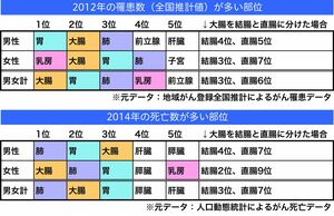 胃がんは、日本人がかかるがんとしては男性1位、女性3位と非常に多い。年に5万人近くが亡くなっている。