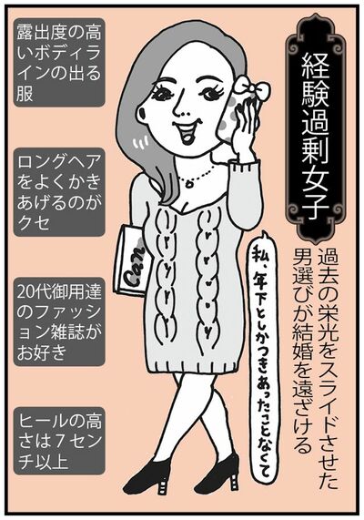ライフ 2017/2/20 あなたはどのタイプ? 結婚できない5大女子の典型的な特徴&口グセとは 婚活草食系 『週刊女性』編集部 印刷 すべての写真を見る ◆経験過剰女子 美人が多く、遊びの誘いを“モテ”と勘違いするタイプ。声をかけてきた男性とすぐに身体の関係を持ち、しばらくは続くが“結婚”を迫ると男は去っていく。男が結婚したがるまでは“寸止め”して、簡単にはさせないこと。 facebook いいね X ポスト LINE はてなブックマークに追加 恋愛・結婚の記事一覧を見る タレコミを投稿する 今日の運勢を無料で見る コピーしました