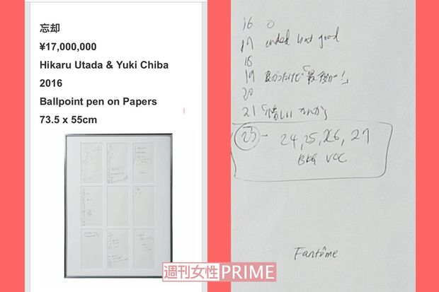 芸能 2017/7/18 宇多田ヒカル、アルバム制作の「メモ書き」が1700万円で販売される 宇多田ヒカルネット通販 『週刊女性』編集部 印刷 [写真 1/3枚目] こちらが販売されていたメモ書き [写真 2/3枚目] 宇多田にとって8年半ぶり、昨年9月に発売したアルバム『Fantôme』 [写真 3/3枚目] 絶縁状態の父親と雪解けの宇多田ヒカル、復活の裏に出産 この写真の記事へ戻る