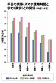 2018/5/18 脳科学の第一人者、川島隆太先生が警告「スマホを使うと偏差値が低下する」 スマホ受験 印刷 [写真 1/7枚目] スマホと偏差値の関係は?(写真はイメージです) [写真 2/7枚目] 【図1】家庭学習時間に関係なく、携帯・スマホの使用時間が長くなるほど平均点が低くなる傾向に [写真 3/7枚目] 【図2】睡眠時間に関係なく、スマホなどの使用時間が長くなるほど平均点が低くなる傾向に [写真 4/7枚目] 【図3】勉強中のスマホ使用率 [写真 5/7枚目] 【図4】家庭学習中に使うプログラムの種類。1度に3つ、4つのアプリをマルチタスクで使いこなしている子どもも少なくない [写真 6/7枚目] 今や中学生でもスマホを持たないのは少数派 [写真 7/7枚目] 『スマホが学力を破壊する』(集英社新書)※記事の中で画像をクリックするとamazonの紹介ページに移動します この写真の記事へ戻る