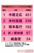 ジャニーズ 2018/5/3 <好きジャニ2018>20代〜40代、年代別ランキングTOP5を発表 ジャニーズランキング 印刷 [写真 1/4枚目] [写真 2/4枚目] 「好きなジャニーズ2018」20代編 [写真 3/4枚目] 「好きなジャニーズ2018」30代編 [写真 4/4枚目] 「好きなジャニーズ2018」40代編 この写真の記事へ戻る