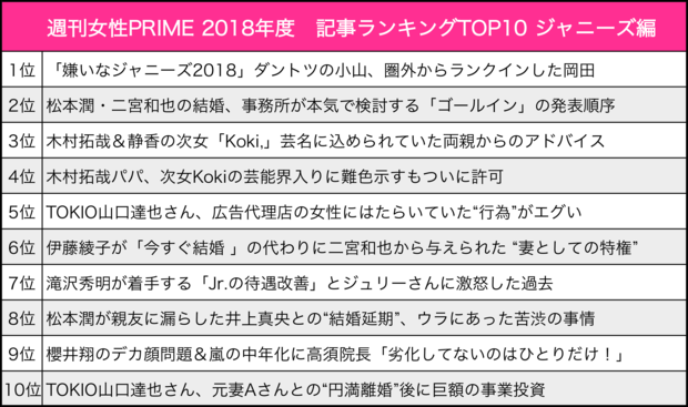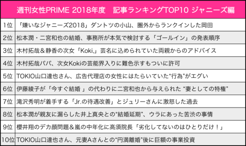 ジャニーズ 2018/12/28 『週刊女性PRIME』2018年・ジャニーズ記事ランキングTOP10 木村拓哉Koki二宮和也松本潤 週刊女性PRIME 印刷 [写真 1/7枚目] 2018年記事ランキング(ジャニーズ編) [写真 2/7枚目] 2018年度版 嫌いなジャニーズ1位〜15位 [写真 3/7枚目] 7月下旬、周囲を気にしながら、自宅から自転車で出てきた井上 [写真 4/7枚目] '06年、長女とKoki,の手を引いて学校への送り迎えをする静香 [写真 5/7枚目] 娘を送り迎えする静香('05年) [写真 6/7枚目] 会見で憔悴した表情の山口さん [写真 7/7枚目] この写真の記事へ戻る