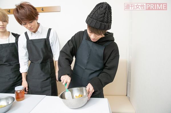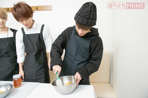 芸能 2018/12/25 イケメンの写真を見てマネするだけでOK! 冬に食べたい、“ハチミツ”スイーツレシピ ThinkingDogsスイーツ 印刷 [写真 1/41枚目] 今回はThinking Dogs(左からわちゅ~、TSUBASA、Jun、大輝)がハチミツを使って冬のほっこりスイーツを作るよ! [写真 2/41枚目] 芸能界きってのハチミツ王子! Thinking DogsギターのJun!! [写真 3/41枚目] ほくほくのスイートポテトとさわやかなクリームチーズのコンビネーションにうっとり!! [写真 4/41枚目] [写真 5/41枚目] [写真 6/41枚目] ドラムプレイで鍛えた腕力で、スマートにさつまいもを制する大輝くん [写真 7/41枚目] さすがイケメン! 粉雪のように優しく砂糖を振りかけるTSUBASAきゅん [写真 8/41枚目] ナイスアシスト! 美しい指先でボールを押さえるのはわちゅ~くん [写真 9/41枚目] 作業を見守るJun先生 [写真 10/41枚目] いちいち萌える共同作業! [写真 11/41枚目] ここまでめちゃくちゃカンタン! [写真 12/41枚目] このクリームチーズが“キモ”ですよ! [写真 13/41枚目] 笑顔で料理するイケメンたちの良さ…… [写真 14/41枚目] スキあらばハチミツをアピるJunくん(笑) [写真 15/41枚目] うずまきを書くように絞るとやりやすいよ! [写真 16/41枚目] 見切れるJunくんにも注目してください [写真 17/41枚目] チーズがスプーンにくっついてやりにくい模様 [写真 18/41枚目] ちょっとモンブランみたいなイメージで! [写真 19/41枚目] 卵黄は、サッとうすく塗るとよき! [写真 20/41枚目] キレイに焼きあがりました [写真 21/41枚目] ショコラの中から、熱いチョコがトロ~リ! 甘ずっぱいブルーベリーソースがナイスカップリング!! [写真 22/41枚目] [写真 23/41枚目] バターを細かく切っておくと溶かしやすいよ! [写真 24/41枚目] 目を伏せたイケメンたちもまたよろしい [写真 25/41枚目] 大輝くんは左利き! でも用途によって使う手が変わるそう [写真 26/41枚目] 手分けして、作業は順調♪ [写真 27/41枚目] チョコは少しずつ注ぎましょう! [写真 28/41枚目] ふるい入れたほうがなめらかに! [写真 29/41枚目] またしてもここまでカンタン! [写真 30/41枚目] 生地がふくらむので、型の2/3くらいまで入れれば大丈夫 [写真 31/41枚目] 弱火でやさしく煮るんだよ~! [写真 32/41枚目] ソースは使いやすいよう、カップに入れて [写真 33/41枚目] 隣でソースの味見をするJunくん(笑) [写真 34/41枚目] フルーツやホイップクリームを添えてもおいしい! [写真 35/41枚目] お行儀よく手を合わせて…… [写真 36/41枚目] 「ちょうだいちょうだいちょうだい!!」 [写真 37/41枚目] シェフと記念撮影! [写真 38/41枚目] 森山シェフ自慢の、鴨むね肉のロースト オレンジソース [写真 39/41枚目] ブリと柿のマリネ 柑橘風味 [写真 40/41枚目] コースの一例 [写真 41/41枚目] フランス料理『ル・ブール・ムー』 この写真の記事へ戻る