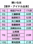 芸能 2019/5/16 〈嫌いな女〉モー娘。とAKBが続々ランクイン! さらに上位には元おニャン子が 嫌いな女アイドル和田アキ子工藤静香 『週刊女性』編集部 印刷 [写真 1/6枚目] 左から後藤真希、矢口真里 [写真 2/6枚目] 嫌いな女【歌手・アイドル出身】 [写真 3/6枚目] 浜崎あゆみ [写真 4/6枚目] 前田敦子 [写真 5/6枚目] [写真 6/6枚目] この写真の記事へ戻る