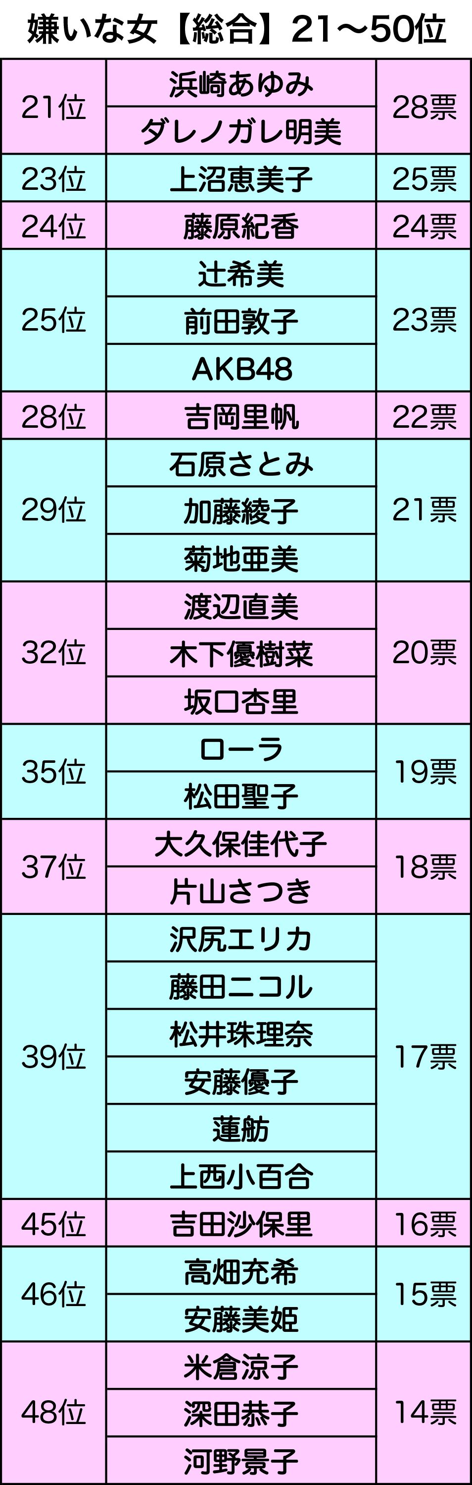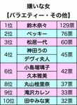 芸能 2019/5/18 鈴木奈々の天下到来!? 嫌いな女・バラエティ部門で古参を脅かす若手の突き上げ 嫌いな女バラエティー鈴木奈々ベッキー 『週刊女性』編集部 印刷 [写真 1/5枚目] 鈴木奈々 [写真 2/5枚目] 嫌いな女ランキング【バラエティー・その他編】 [写真 3/5枚目] 左から神田うの、デヴィ夫人 [写真 4/5枚目] 嫌いな女ランキング【総合】TOP20 [写真 5/5枚目] この写真の記事へ戻る