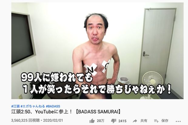 芸能 2020/2/20 宮迫博之と江頭2:50の明暗、嫌われ芸人はなぜ100万人に受け入れられたのか お笑い芸人江頭2:50宮迫博之YouTube地下芸人バラエティー 印刷 [写真 1/6枚目] チャンネル開設後、初投稿の動画(『エガちゃんねる』より) [写真 2/6枚目] 江頭2:50 [写真 3/6枚目] 田村亮の復帰会見と同日に『YouTube』でヒカルとのコラボ動画をアップした宮迫には批判の声が [写真 4/6枚目] 全力で自己紹介ギャグをきめる宮迫博之(You Tubeより) [写真 5/6枚目] '20年、ユーチューバーデビューについて直撃取材を受ける宮迫博之 [写真 6/6枚目] '20年、ユーチューバーデビューについて直撃取材を受ける宮迫博之 この写真の記事へ戻る
