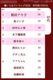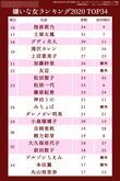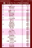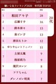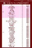 芸能 2020/5/2 和田アキ子がV3、ピン子が続き…、1450人の『嫌いな女ランキング』2020! 女優女性アイドルタレント嫌いな女ランキング和田アキ子泉ピン子鈴木奈々田中みな実久本雅美ベッキー工藤静香小倉優子唐田えりか木下優樹菜広瀬すず 『週刊女性』編集部 印刷 [写真 1/13枚目] (写真左から)泉ピン子、和田アキ子、鈴木奈々 [写真 2/13枚目] 嫌いな女2020ランキングTOP77(1〜15位) [写真 3/13枚目] (写真左から)久本雅美、田中みな実、ベッキー [写真 4/13枚目] (写真左から)広瀬すず、唐田えりか、工藤静香、小倉優子、木下優樹菜 [写真 5/13枚目] 嫌いな女2020ランキングTOP77(16〜34位) [写真 6/13枚目] 嫌いな女2020ランキングTOP77(37〜65位) [写真 7/13枚目] 嫌いな女2020ランキングTOP77(65〜77位) [写真 8/13枚目] 嫌いな女2020 年代別ランキング〜20代〜 [写真 9/13枚目] 嫌いな女2020 年代別ランキング〜30代〜 [写真 10/13枚目] 嫌いな女2020 年代別ランキング〜40代〜 [写真 11/13枚目] 嫌いな女2020 年代別ランキング〜50代〜 [写真 12/13枚目] 嫌いな女2020 年代別ランキング〜60代以上〜 [写真 13/13枚目] 好きな女2020 TOP20 この写真の記事へ戻る