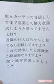社会・事件 2020/5/11 「あなたが犯人ですか?」飲食店にTwitterや貼り紙で警告する“コロナ自警”を直撃 事件コロナウイルストラブルご近所Twitter 『週刊女性』編集部 印刷 [写真 1/9枚目] “自粛警察”のつぶやき [写真 2/9枚目] 「いちよん」の村田さんは「近所ならこういう形ではなく、面と向かって堂々と話をしてほしかった」と話す [写真 3/9枚目] ビストロの店主は警察に通報。店の前には防犯カメラがあり、犯人や犯行の様子が記録されている可能性も [写真 4/9枚目] 週刊女性が直撃した飲食店の店主は、健太さんのラーメン店にはよく通っていたという [写真 5/9枚目] ちなみに「三神森」もラーメン店で、嫌がらせはなく20時以降も堂々と営業しているとのこと [写真 6/9枚目] ビストロの前にある防犯カメラ。貼り紙と窓を割った犯人が 写りこんでいる可能性も [写真 7/9枚目] 「いちよん」の村田さんは「近所ならこういう形ではなく、面と向かって堂々と話をしてほしかった」と話す [写真 8/9枚目] 週刊女性が直撃した飲食店の店主は、健太さんのラーメン店にはよく通っていたという [写真 9/9枚目] ビストロの店主は警察に通報。店の前には防犯カメラがあり、犯人や犯行の様子が記録されている可能性も この写真の記事へ戻る