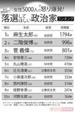 社会・事件 2021/10/30 3000人が回答『好きな/嫌いなタレント議員』、ワースト1位の不倫報道に「税金の無駄」 政治タレント議員選挙国会ランキング 印刷 [写真 1/19枚目] (写真左上から時計回りに)橋本聖子、蓮舫、山本太郎、森下千里、今井絵理子、須藤元気 [写真 2/19枚目] 元SPEEDの今井絵理子 [写真 3/19枚目] 親子ツーショット(蓮舫インスタグラムより) [写真 4/19枚目] ポロシャツパツパツの山本太郎 [写真 5/19枚目] 女子1500メートルで3位になりメダルを手に喜ぶ橋本聖子(1992年アルベールビル五輪) [写真 6/19枚目] 日々、選挙活動に励むれいわ新選組の八幡愛 [写真 7/19枚目] 元格闘家の須藤元気 [写真 8/19枚目] 森下千里(2008年) [写真 9/19枚目] 好きなタレント議員トップ10 [写真 10/19枚目] 嫌いなタレント議員トップ10 [写真 11/19枚目] 過去にはかなりキワドイ内容のDVDに出演していた八幡愛 [写真 12/19枚目] 2007年5月、舞台『志村魂2』制作発表にて。志村けんに寄り添う森下千里 [写真 13/19枚目] 2008年10月、井上康生と東原亜希の結婚披露宴に出席した森下千里 [写真 14/19枚目] 2008年10月、井上康生と東原亜希の結婚披露宴に出席した森下千里 [写真 15/19枚目] 自民党から出馬を予定している森下千里。'19年に引退したがルックスは健在 [写真 16/19枚目] 秋の衆院選で落選してほしい政治家ランキング [写真 17/19枚目] “失言議員”ワースト10 [写真 18/19枚目] 総理になってほしい政治家ランキング ※全国の18~70歳の女性1万人に8月25日から26日にかけてネットアンケートを実施。回答者1人につき「総理になってほしい」「総理になってほしくない」政治家それぞれの氏名と理由を自由記述で回答してもらった。1つの質問項目に複数人の回答があった場合は無効とした [写真 19/19枚目] 総理になってほしくない政治家ランキング ※全国の18~70歳の女性1万人に8月25日から26日にかけてネットアンケートを実施。回答者1人につき「総理になってほしい」「総理になってほしくない」政治家それぞれの氏名と理由を自由記述で回答してもらった。1つの質問項目に複数人の回答があった場合は無効とした この写真の記事へ戻る