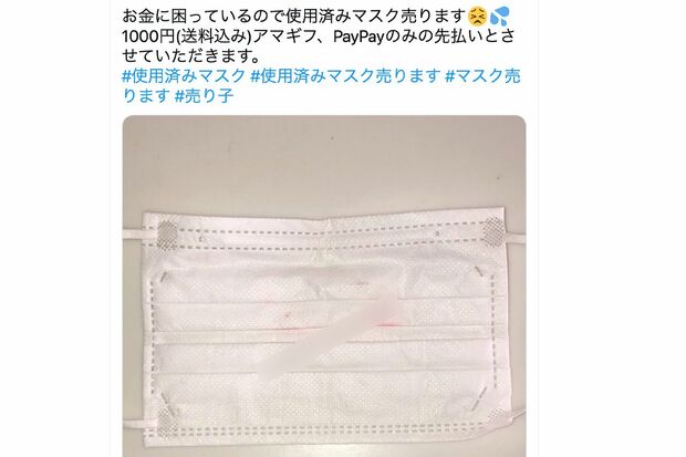 社会・事件 2022/2/10 《#使用済みマスク売ります》で月2万円、「気持ち悪いけど」SNSで“商売”する女性たちのホンネ 事件マスク売春SNS下着ネット犯罪コロナウイルス 印刷 [写真 1/3枚目] 《#使用済みマスク売ります》のタグを使い、マスクを販売する女性 [写真 2/3枚目] マスクを入り口にして、“本命”となる商材は、やはり下着。マスクの3倍ほどの値付け [写真 3/3枚目] 中には、細かく“着用日数”まで明記してマスクや下着などを販売する女性も…… この写真の記事へ戻る
