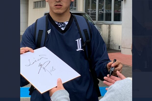 芸能 2023/2/15 プロ野球・西武ライオンズの日南市南郷町キャンプで開かれた即席サイン会に転売ヤーが押しかけ?「5回目ですよ」迷惑行為を制した隅田知一郎投手の牽制球 スポーツ野球転売迷惑行為マナーファン 印刷 [写真 1/7枚目] ツイッターに投稿された西武ライオンズの選手 [写真 2/7枚目] [写真 3/7枚目] ツイッターで投稿された、“転売ヤー”に苦言を呈したとされる西武ライオンズ・隅田知一郎投手 [写真 4/7枚目] 2月13日、『メルカリ』に出品された西武・隅田知一郎投手のサイン [写真 5/7枚目] ツイッターで投稿された、“転売ヤー”に苦言を呈したとされる西武ライオンズ・隅田知一郎投手 [写真 6/7枚目] ツイッターで投稿された、“転売ヤー”に苦言を呈したとされる西武ライオンズ・隅田知一郎投手 [写真 7/7枚目] この写真の記事へ戻る