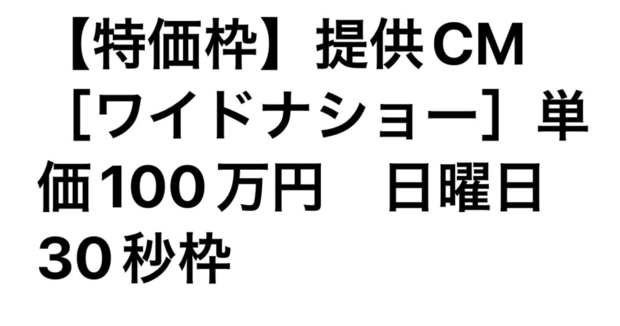 芸能 2023/2/26 松本人志が降板報道のフジテレビ系『ワイドナショー』存続危機? 広告代理店がCM枠「30秒100万円」でSNSのDMを使ってスポンサー集めに翻弄か お笑い芸人文化人アナウンサーテレビ番組松本人志ダウンタウン東野幸治フジテレビワイドショー 印刷 [写真 1/9枚目] 今春『ワイドナショー』から降板すると報じられた松本人志 [写真 2/9枚目] [写真 3/9枚目] [写真 4/9枚目] [写真 5/9枚目] [写真 6/9枚目] [写真 7/9枚目] [写真 8/9枚目] ダウンタウンの松本人志と浜田雅功 [写真 9/9枚目] 松本人志ら人気芸人御用達の店は、あの若手芸人の実家! この写真の記事へ戻る