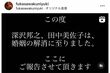 芸能 2023/6/9 “収入格差100倍婚”田中美佐子とTake2深沢邦之が結婚28年目で離婚 その裏にあった「個人事務所の取締役の名前」と「片道60㎞の実家通い」 女優お笑い芸人離婚 印刷 [写真 1/12枚目] 離婚を発表した深沢邦之と田中美佐子 [写真 2/12枚目] [写真 3/12枚目] 30代前半の田中美佐子と岡本健一 [写真 4/12枚目] ドラマ『十年愛』制作発表で。左から大江千里、田中美佐子、浜田雅功、鈴木杏樹(1992年9月11日) [写真 5/12枚目] 『十年愛』制作発表に参加する田中美佐子(1992年9月) [写真 6/12枚目] 『十年愛』制作発表に参加する田中美佐子(1992年9月) [写真 7/12枚目] 『十年愛』制作発表に参加する田中美佐子(1992年9月) [写真 8/12枚目] 田中美佐子の離婚報告全文(本人のインスタグラムより) [写真 9/12枚目] 田中美佐子の離婚報告の投稿には、海の写真が添えられた(本人のインスタグラムより) [写真 10/12枚目] 深沢もインスタグラムで離婚を報告した(本人のインスタグラムより) [写真 11/12枚目] [写真 12/12枚目] 『We Love Television?』より。突然、降板となった田中美佐子の代わりにお母さん役を この写真の記事へ戻る