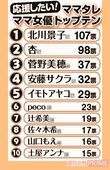 芸能 2023/9/25 「見たくない」ママタレランキングは不倫報道のあったお騒がせタレントとでしゃばり“アイドル妻”が上位に!「応援したい」は北川景子らママ女優が独占 女優タレントアナウンサーお笑い芸人北川景子杏菅野美穂安藤サクライモトアヤコ熊田曜子板野友美辻希美小倉優子キンタロー。 印刷 [写真 1/26枚目] 左から「応援したい」ママ女優として上位にランクインした菅野美穂、北川景子、杏、安藤サクラ [写真 2/26枚目] 左から「応援したい」ママタレに選ばれた、peco、山口もえ、イモトアヤコ [写真 3/26枚目] 左から、「応援したい」と「見たくない」でどちらもランクインした佐々木希、土屋アンナ、辻希美 [写真 4/26枚目] 「見たくない」ランキングで、残念ながら上位に入ってしまった(左から)熊田曜子、小倉優子、板野友美。スキャンダルや話題づくりが痛手に [写真 5/26枚目] (左から)「見たくない」でランクインしたキンタロー。、竹内由恵、若槻千夏、丸山桂里奈 [写真 6/26枚目] [写真 7/26枚目] 応援したいママタレ・ママ女優トップテン 日本全国20歳以上の女性1000人を対象に、'23年9月11日から12日にかけてインターネットによるアンケートを実施。未就学児を持つ人気女優・女性タレントを編集部が選び、それぞれ「好き」「嫌い」と思う1人を選んでもらい、理由を聞いた。 [写真 8/26枚目] 応援したくないママタレ・ママ女優トップテン日本全国20歳以上の女性1000人を対象に、'23年9月11日から12日にかけてインターネットによるアンケートを実施。未就学児を持つ人気女優・女性タレントを編集部が選び、それぞれ「好き」「嫌い」と思う1人を選んでもらい、理由を聞いた。 [写真 9/26枚目] 北川景子 [写真 10/26枚目] 杏 [写真 11/26枚目] 菅野美穂 [写真 12/26枚目] 安藤サクラ [写真 13/26枚目] イモトアヤコ [写真 14/26枚目] 山口もえ [写真 15/26枚目] peco [写真 16/26枚目] 佐々木希 [写真 17/26枚目] 土屋アンナ [写真 18/26枚目] 辻希美 [写真 19/26枚目] 熊田曜子 [写真 20/26枚目] 小倉優子 [写真 21/26枚目] 板野友美 [写真 22/26枚目] キンタロー。 [写真 23/26枚目] 丸山桂里奈 [写真 24/26枚目] 若槻千夏 [写真 25/26枚目] 竹内由恵 [写真 26/26枚目] この写真の記事へ戻る
