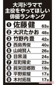 芸能 2025/2/2 「大河ドラマで主役をやってほしい」俳優ランキング!1位は“剣豪”経験十分の佐藤健、2位以下には50代がズラリ 佐藤健竹野内豊大沢たかお西島秀俊大河ドラマNHK山崎賢人目黒蓮反町隆史眞栄田郷敦平野紫耀木村拓哉横浜流星男優 印刷 [写真 1/46枚目] 左から、大沢たかお、佐藤健、竹野内豊 [写真 2/46枚目] 反町隆史 [写真 3/46枚目] 西島秀俊 [写真 4/46枚目] 大河ドラマで主役をやってほしい俳優ランキング [写真 5/46枚目] 佐藤健 [写真 6/46枚目] 佐藤健 [写真 7/46枚目] 佐藤健 [写真 8/46枚目] 木村拓哉 [写真 9/46枚目] 木村拓哉と中居正広(1996年撮影、『週刊女性』写真班) [写真 10/46枚目] 木村拓哉 [写真 11/46枚目] 「心根が腐ってると思う」問題の発言があったとされる木村拓哉のソロライブ(公式インスタグラムより) [写真 12/46枚目] 竹野内豊 [写真 13/46枚目] 『アサヒザ・リッチ』のCMに出演する竹野内豊 [写真 14/46枚目] 大沢たかお [写真 15/46枚目] 大沢たかお [写真 16/46枚目] “やりすぎ変装”大沢たかお、20代美女との銀座デート発見 [写真 17/46枚目] 大沢たかお [写真 18/46枚目] 大沢たかお [写真 19/46枚目] 『Number_i』の3人(左から岸優太、平野紫耀、神宮寺勇太) [写真 20/46枚目] 『NHK紅白歌合戦』ではデビュー曲『GOAT』を披露(平野紫耀インスタグラムより) [写真 21/46枚目] 左から元King & Princeの神宮寺勇太、平野紫耀、岸優太。『TOBE』に所属して1月1日にNumber_iとしてデビュー、初の紅白出場を果たす [写真 22/46枚目] 眞栄田郷敦 [写真 23/46枚目] わんこそばの店の入り口に飾られた眞栄田郷敦の記録。約14人前のそばを平らげた [写真 24/46枚目] 2022年の『千葉真一さんお別れの会』では親子の3ショットが。中央が幼少期の眞栄田郷敦で右が兄の新田真剣佑 [写真 25/46枚目] 眞栄田郷敦(2022年、ドラマ『エルピス』ロケにて) [写真 26/46枚目] 二階堂ふみが撮影した眞栄田郷敦(『週刊文春』原色美女図鑑のインスタグラムより) [写真 27/46枚目] 二階堂ふみが撮影した眞栄田郷敦(『週刊文春』原色美女図鑑のインスタグラムより) [写真 28/46枚目] 二階堂ふみが撮影した眞栄田郷敦(『週刊文春』原色美女図鑑のインスタグラムより) [写真 29/46枚目] 初CM共演が大きな話題となった松嶋菜々子と反町隆史(SHISEIDO 資生堂公式YouTubeより) [写真 30/46枚目] 初CM共演が大きな話題となった松嶋菜々子と反町隆史(SHISEIDO 資生堂公式YouTubeより) [写真 31/46枚目] 初CM共演が大きな話題となった松嶋菜々子と反町隆史(SHISEIDO 資生堂公式YouTubeより) [写真 32/46枚目] 『GTOリバイバル』に出演する、左から小栗旬、池内博之、松嶋菜々子、反町隆史、山崎裕太、窪塚洋介(公式インスタグラムより) [写真 33/46枚目] 反町隆史、松嶋菜々子夫妻(2018年) [写真 34/46枚目] '14年、松嶋菜々子と愛車で外出していた反町隆史 [写真 35/46枚目] 『FENDI』で日本人初となるグローバル広告キャンペーンのモデルに起用されたSnow Manの目黒蓮(ブランドの公式ホームページより) [写真 36/46枚目] 『FENDI』で日本人初となるグローバル広告キャンペーンのモデルに起用されたSnow Manの目黒蓮(ブランドの公式ホームページより) [写真 37/46枚目] 『FENDI』で日本人初となるグローバル広告キャンペーンのモデルに起用されたSnow Manの目黒蓮(ブランドの公式ホームページより) [写真 38/46枚目] 心配の声があがった佐藤健の激痩せ姿(映画公式Xより) [写真 39/46枚目] 佐藤健主演のNetflixドラマ『グラスハート』主要キャスト5人のビジュアル。ヒロインの宮﨑優(左上)は、新人ながらも抜擢された [写真 40/46枚目] 『四月になれば彼女は』の公開を控え、生配信を行った佐藤健(本人のYouTubeチャンネルより) [写真 41/46枚目] 佐藤健の公式LINE。本人が管理しており、メッセージを送ると返信があることも [写真 42/46枚目] パーカーショットを披露した大沢たかお(本人インスタグラムより) [写真 43/46枚目] パーカーショットを披露した大沢たかお(本人インスタグラムより) [写真 44/46枚目] 佐藤健、『るろうに剣心』では常に和服で臨んでいた。芸能界トップを争う浴衣顔(写真/『週刊女性』写真班) [写真 45/46枚目] 初写真集『Intently』の発売記念握手会で(2008年1月27日) [写真 46/46枚目] 2011年1月、写真集『NOUVELLES(ヌーヴェル)』の発売イベントでファンとハイタッチ この写真の記事へ戻る