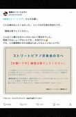 社会・事件 2025/3/24 炎上した大阪のストリートピアノのX「演奏曲などにも縛りのある都庁型」投稿でとばっちり、都庁の担当者は困惑 炎上SNS事件 印刷 [写真 1/11枚目] 南港ストリートピアノ公式インスタグラム [写真 2/11枚目] 炎上した南港ストリートピアノの投稿(公式Xより) [写真 3/11枚目] 南港ストリートピアノ関係者が投稿したと思われるGoogleマップの口コミがX上で拡散されている [写真 4/11枚目] 都庁おもいでピアノの説明文(公式サイトより) [写真 5/11枚目] 大阪南港ATCシーサイドテラスに設置されたストリートピアノ(公式サイトより) [写真 6/11枚目] 大阪南港ATCシーサイドテラスに設置されたストリートピアノの注意事項(公式サイトより) [写真 7/11枚目] 南港ストリートピアノのXより [写真 8/11枚目] Xで拡散された乃木坂46ファンがストリートピアノでコールを入れるようす [写真 9/11枚目] さいたま新都心駅のストリートピアノの公式Xには利用の注意書きが [写真 10/11枚目] ハラミちゃんが注目されるきっかけとなった新宿都庁での演奏(公式YouTubeチャンネルより) [写真 11/11枚目] ハラミちゃんも過去に同ピアノで演奏している(YouTubeより) この写真の記事へ戻る
