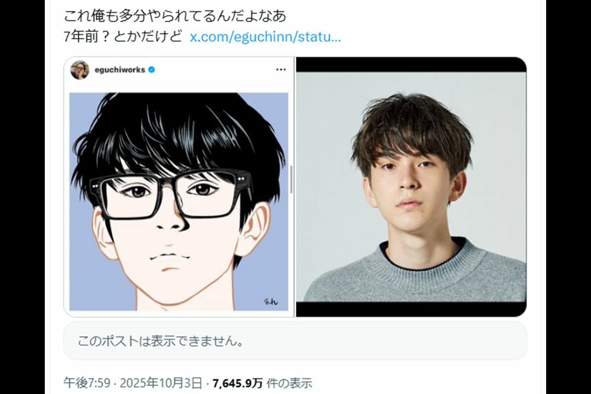 社会・事件 2025/10/7 イラストレーターの江口寿史氏“トレパク”騒動、Zoffもデニーズも「精査します」続々暴かれる逃れられないトレース疑惑 事件 印刷 [写真 1/12枚目] 「インスタに流れてきた横顔」を本人の承諾なしに使っていたという江口寿史氏のポスター(公式Xより) [写真 2/12枚目] X上に拡散されている、江口寿史とデニーズコラボイラストと酷似している新木優子(Xより) [写真 3/12枚目] Zoffと江口氏のコラボ企画で、トレースされたとされた写真(Xより) [写真 4/12枚目] デニーズと江口氏のコラボで、メニュー表のイラストでトレースがあったと思われる投稿写真(Xより) [写真 5/12枚目] 1『中央線文化祭』のメインビジュアルに採用されたイラスト(江口寿史氏Xより) [写真 6/12枚目] ネットで特定された、古塔つみ氏の作品と“元ネタ”とされる写真や作品の数々 [写真 7/12枚目] 古塔つみによる『ポケモン』とのコラボイラスト、トレース疑惑の真相は? [写真 8/12枚目] 古塔つみの公式ツイッターのアイコンは清原香耶?トップ絵にもトレース疑惑が [写真 9/12枚目] ネット上で特定・検証が進む古塔つみ氏の作品と、元ネタとされる画像 [写真 10/12枚目] ネット上で特定・検証が進む古塔つみ氏の作品と、元ネタとされる画像 [写真 11/12枚目] ネット上で特定・検証が進む古塔つみ氏の作品と、元ネタとされる画像 [写真 12/12枚目] 古塔つみ氏の『Weibo』アカウントには「♀」マークが この写真の記事へ戻る