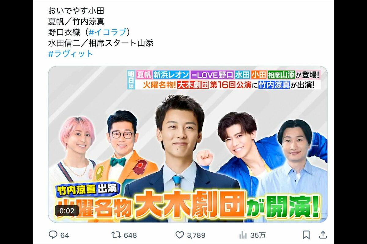 旧ジャニーズ 2025/10/9 Snow Man佐久間大介、TBS『ラヴィット!』生放送中の地震速報に手話対応で絶賛「冷静さがとても尊敬できる」 佐久間大介Snow ManNHKTBS地震 印刷 [写真 1/11枚目] 佐久間大介(SnowMan) [写真 2/11枚目] イタリア・ミラノのGoogleストリートビューに写り込んでいるSnowManの佐久間大介と日本テレビアナウンサーの伊藤遼(Googleストリートビューより) [写真 3/11枚目] 『NHKみんなの手話』に出演していた佐久間大介(SnowMan) [写真 4/11枚目] 『NHKみんなの手話』に出演していた佐久間大介(SnowMan) [写真 5/11枚目] 『ラヴィット!』(TBS系)の生放送中、手話で地震速報を伝えた佐久間大介(番組公式Xより) [写真 6/11枚目] イタリア・ミラノのGoogleストリートビューに写り込んでいるSnowManの佐久間大介と日本テレビアナウンサーの伊藤遼(Googleストリートビューより) [写真 7/11枚目] 親友で日本テレビアナウンサーの伊藤遼と、2024年6月にイタリアへ1週間ほど旅行していたSnowManの佐久間大介(佐久間のXより) [写真 8/11枚目] 2024年5月22日、ドバイ発のエミレーツ便で羽田空港第3ターミナルに到着した佐久間大介 [写真 9/11枚目] 2024年9月、映画撮影に参加していた佐久間大介(左)とユウタ。楽しそうに会話をする姿も見られた [写真 10/11枚目] 2024年9月、主演映画の撮影に臨んだ佐久間大介 [写真 11/11枚目] (左から時計回りに)SnowMan・佐久間大介、阿部亮平、宮舘涼太 この写真の記事へ戻る