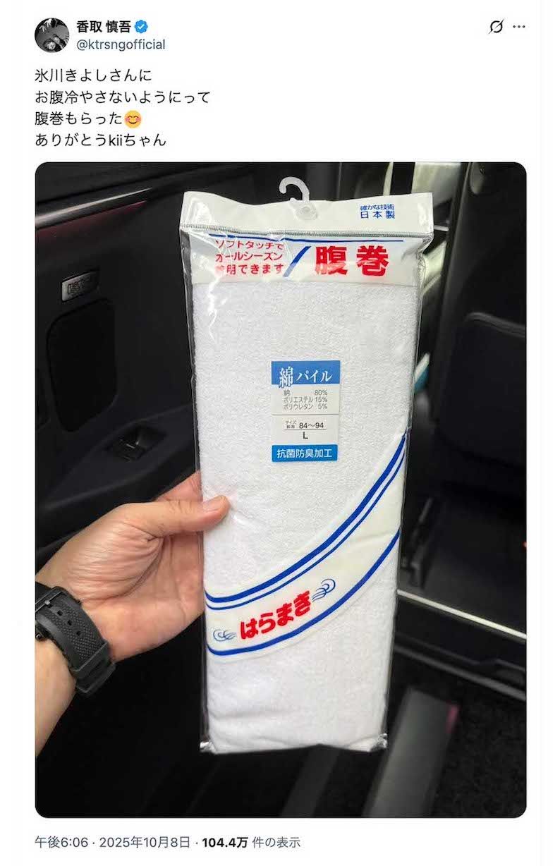 旧ジャニーズ 2025/10/11 香取慎吾「ありがとう、Kiiちゃん」氷川きよしからのシンプル日本製の“腹巻き”プレゼント投稿にファンほっこり 香取慎吾氷川きよしSMAP新しい地図歌手 印刷 [写真 1/32枚目] 香取慎吾 [写真 2/32枚目] 「ありがとうkiiちゃん」氷川きよしから腹巻きを貰った香取慎吾(本人のXより) [写真 3/32枚目] 国民的人気アイドルだったSMAP(1996年撮影、『週刊女性』写真班) [写真 4/32枚目] サントリーのCMに出演した『新しい地図』の3人。左から稲垣吾郎、草なぎ剛、香取慎吾 [写真 5/32枚目] 香取慎吾がSMAPのメンバーカラーをイメージして描いた絵画(香取慎吾公式インスタグラムより) [写真 6/32枚目] 香取慎吾がSMAPのメンバーカラーをイメージして描いた絵画(香取慎吾公式インスタグラムより) [写真 7/32枚目] 香取慎吾ら『新しい地図』に恵比寿『登川』の特上弁当(4500円)を200人分差し入れた鶴瓶は“(安いと)絶対いろいろ言われる”とぼやいたそう。(本人公式SNSより) [写真 8/32枚目] ロケバスのドアが閉まるまで、ファンに手を振り続けた香取慎吾 [写真 9/32枚目] ロケバスのドアが閉まるまで、ファンに手を振り続けた香取慎吾 [写真 10/32枚目] 2007年、カンヌへと向かう香取慎吾と木村拓哉 [写真 11/32枚目] 『まつもtoなかい』出演を報告(香取慎吾公式ツイッターより) [写真 12/32枚目] 自身の個展に来ていた香取慎吾(撮影者より提供) [写真 13/32枚目] 初日に訪れ、ファンに手を振る香取慎吾(撮影者より提供) [写真 14/32枚目] 氷川きよしのインスタグラムより [写真 15/32枚目] 氷川きよしのインスタグラムより [写真 16/32枚目] 氷川きよしのインスタグラムのストーリーに投稿された“お肌ツルツル”の自撮り [写真 17/32枚目] 氷川きよしのインスタグラムより [写真 18/32枚目] 氷川きよしのインスタグラムより [写真 19/32枚目] 氷川きよしの後ろで踊る俳優の渡辺謙(氷川きよしの公式TikTokより) [写真 20/32枚目] 氷川きよしの後ろで踊る俳優の渡辺謙(氷川きよしの公式TikTokより) [写真 21/32枚目] 氷川きよしの後ろで踊る俳優の渡辺謙(氷川きよしの公式TikTokより) [写真 22/32枚目] 氷川きよし 森さん作詞の『限界突破×サバイバー』で紅白にも出場 [写真 23/32枚目] 氷川きよし(NHK紅白歌合戦公式Twitterより) [写真 24/32枚目] コンサート中に記念撮影を行う新しい地図の3人(香取慎吾公式Instagramより) [写真 25/32枚目] 『ななにー地下ABEMA』出演者と記念撮影(香取慎吾公式Instagramより) [写真 26/32枚目] コンサート中に記念撮影を行う新しい地図の3人(香取慎吾公式Instagramより) [写真 27/32枚目] 音楽番組に出演した新しい地図の3人(香取慎吾公式Instagramより) [写真 28/32枚目] コンサート中に記念撮影を行う新しい地図の3人(香取慎吾公式Instagramより) [写真 29/32枚目] コンサート中に記念撮影を行う新しい地図の3人(香取慎吾公式Instagramより) [写真 30/32枚目] コンサート中に記念撮影を行う新しい地図の3人(香取慎吾公式Instagramより) [写真 31/32枚目] コンサート中に記念撮影を行う新しい地図の3人(香取慎吾公式Instagramより) [写真 32/32枚目] 香取慎吾が公開した中森明菜とのツーショット(香取慎吾のインスタグラムより) この写真の記事へ戻る