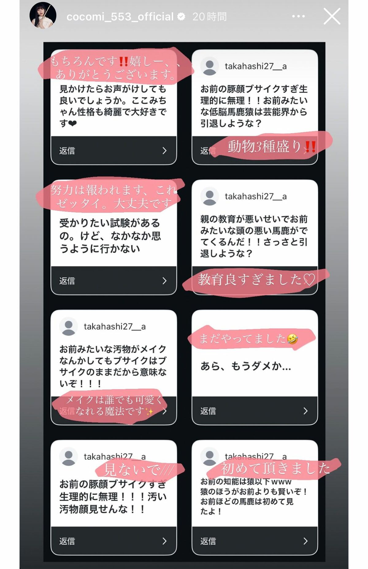 芸能 2025/10/11 木村拓哉の長女・Cocomiがストーリーズに寄せられた《お前みたいな頭の悪い馬鹿》アンチコメントに反撃 木村拓哉工藤静香CocomiKoki女優InstagramSNSアーティスト 印刷 [写真 1/40枚目] Cocomi(2021年) [写真 2/40枚目] 話題になったCocomiのアンチ投稿への反撃(公式インスタグラムより) [写真 3/40枚目] 2013年、フルートコンクールに姉のÇocomi(左)と参加したKoki, [写真 4/40枚目] ナタリー・ポートマンとのツーショットを披露したCocomi(本人インスタグラムより) [写真 5/40枚目] Cocomiとの「おデート」したことをSNSで報告したkoki,(koki,のインスタグラムより) [写真 6/40枚目] 工藤静香が投稿した長女Cocomiへの誕生日メッセージ(工藤のインスタグラムより) [写真 7/40枚目] 「足長すぎて怖いよ」Cocomiの全身ショット(公式Xより) [写真 8/40枚目] 目元のすっぴんを披露したCocomi(公式インスタグラムより) [写真 9/40枚目] 長女・Cocomiがアップした工藤静香との親子ショット [写真 10/40枚目] Cocomi公式Instagramより [写真 11/40枚目] Koki,21歳の誕生日に姉妹の未公開写真を投稿したCocomi [写真 12/40枚目] Koki,21歳の誕生日に姉妹の未公開写真を投稿したCocomi [写真 13/40枚目] 一番痩せていたときは41kgだったと写真付きで明かしたCocomi(本人のインスタグラムより) [写真 14/40枚目] 体重に関する質問にも赤裸々に回答したCocomi(本人のインスタグラムより) [写真 15/40枚目] 2022年の紅白で親子共演したCocomi(右)と工藤静香(CocomiのSNSより) [写真 16/40枚目] 母・工藤静香との船乗りを楽しむCocomi(Cocomi公式インスタグラム) [写真 17/40枚目] 母・工藤静香との船乗りを楽しむCocomi(Cocomi公式インスタグラム) [写真 18/40枚目] 船からの景色を楽しむ工藤静香(Cocomi公式インスタグラム) [写真 19/40枚目] 「インパクトのあるTシャツを合わせているので、デニム本来の価値がわかりやすいです」(高はしさん) Cocomi公式インスタグラムより [写真 20/40枚目] 「ロックから生まれたグランジスタイルを2色のデニムアイテムを使ってナチュラルに着こなしていますね」(高はしさん)Cocomi公式インスタグラムより [写真 21/40枚目] 10月7日、ワールドカップバレー観戦をインスタグラムで報告していたKoki,とCocomi(ストーリーズより) [写真 22/40枚目] 木村拓哉51歳の誕生日にCocomiが投稿した写真(Cocomi公式インスタグラムより) [写真 23/40枚目] 木村拓哉51歳の誕生日にCocomiが投稿した写真(Cocomi公式インスタグラムより) [写真 24/40枚目] 木村拓哉51歳の誕生日にCocomiが投稿した写真(Cocomi公式インスタグラムより) [写真 25/40枚目] 木村拓哉51歳の誕生日にCocomiが投稿した写真(Cocomi公式インスタグラムより) [写真 26/40枚目] 木村拓哉51歳の誕生日にCocomiが投稿した写真(Cocomi公式インスタグラムより) [写真 27/40枚目] 木村拓哉50歳の誕生日にCocomiが投稿した写真(Cocomi公式インスタグラムより) [写真 28/40枚目] 木村拓哉50歳の誕生日にCocomiが投稿した写真(Cocomi公式インスタグラムより) [写真 29/40枚目] 木村拓哉50歳の誕生日にCocomiが投稿した写真(Cocomi公式インスタグラムより) [写真 30/40枚目] 左から工藤静香、Koki,、Cocomi(2021年撮影) [写真 31/40枚目] 胸の谷間も見える真っ黒なドレス姿を投稿したCocomi(本人のインスタグラムより) [写真 32/40枚目] 工藤静香の投稿にコメントを寄せたCocomi(工藤静香インスタグラムより) [写真 33/40枚目] 胸の谷間も見える真っ黒なドレス姿を投稿したCocomi(本人のインスタグラムより) [写真 34/40枚目] 胸の谷間も見える真っ黒なドレス姿を投稿したCocomi(本人のインスタグラムより) [写真 35/40枚目] 胸の谷間も見える真っ黒なドレス姿を投稿したCocomi(本人のインスタグラムより) [写真 36/40枚目] 胸の谷間も見える真っ黒なドレス姿を投稿したCocomi(本人のインスタグラムより) [写真 37/40枚目] ガッツリ胸元ドレスに驚きの声が寄せられたCocomi(本人インスタグラムより) [写真 38/40枚目] ガッツリ胸元ドレスに驚きの声が寄せられたCocomi(本人インスタグラムより) [写真 39/40枚目] ガッツリ胸元ドレスに驚きの声が寄せられたCocomi(本人インスタグラムより) [写真 40/40枚目] ガッツリ胸元ドレスに驚きの声が寄せられたCocomi(本人インスタグラムより) この写真の記事へ戻る