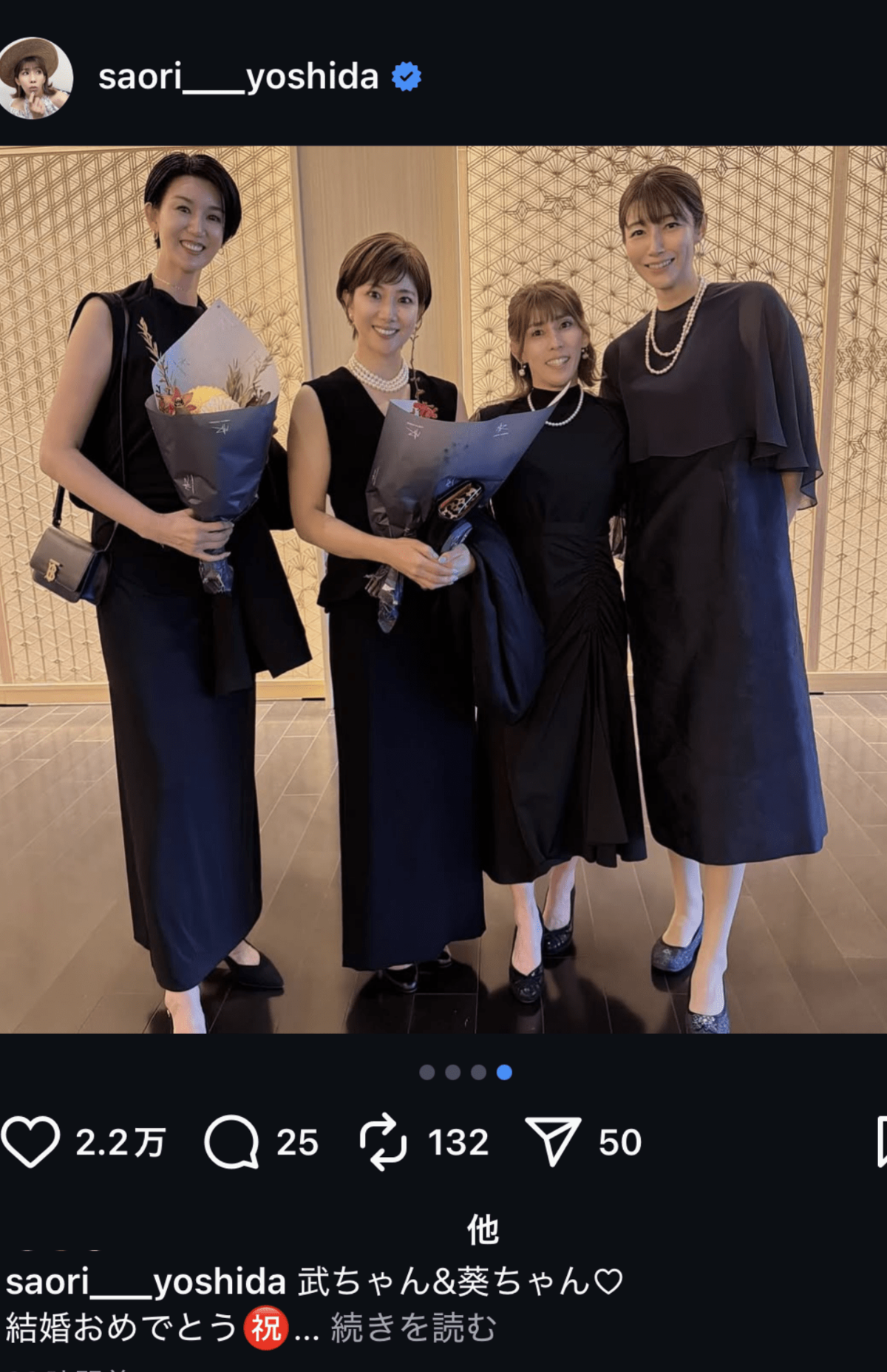 芸能 2025/10/11 武尊&川口葵の結婚披露宴で山田孝之が異彩を放つ「夫が早めに謝ること」力強く語った“夫婦円満”の秘訣 山田孝之狩野舞子吉田沙保里女優スポーツ結婚式男優タレント 印刷 [写真 1/9枚目] 武尊と川口葵(ともに本人インスタグラムより) [写真 2/9枚目] 武尊と川口葵の結婚披露宴に参加した吉田沙保里(公式インスタグラムより) [写真 3/9枚目] 武尊とは交流がある山田孝之(公式Xより) [写真 4/9枚目] 武尊と川口葵の結婚披露宴に参加した吉田沙保里(公式インスタグラムより) [写真 5/9枚目] 武尊と川口葵の結婚披露宴に参加した吉田沙保里(公式インスタグラムより) [写真 6/9枚目] 武尊と川口葵の結婚披露宴に参加した吉田沙保里(公式インスタグラムより) [写真 7/9枚目] 武尊と川口葵の結婚披露宴に参加した狩野舞子ら著名人たち [写真 8/9枚目] 武尊と川口葵の結婚披露宴に参加した狩野舞子ら著名人たち [写真 9/9枚目] 武尊とは交流がある山田孝之(インスタグラムより) この写真の記事へ戻る