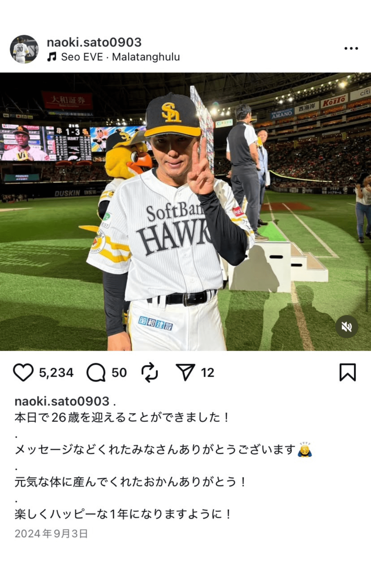 芸能 2025/10/18 福岡ソフトバンク元ドラ1・佐藤直樹外野手が婚約者を殴打か「キレやすい悪ガキだった」語っていた幼少期の“素顔” 野球スポーツ犯罪 印刷 [写真 1/9枚目] 福岡ソフトバンクホークスの佐藤直樹外野手(ソフトバンクホークス公式サイトより) [写真 2/9枚目] 福岡ソフトバンクホークスの佐藤直樹外野手(本人のインスタグラムより) [写真 3/9枚目] 福岡ソフトバンクホークスの佐藤直樹外野手(本人のインスタグラムより) [写真 4/9枚目] 福岡ソフトバンクホークスの佐藤直樹外野手(本人のインスタグラムより) [写真 5/9枚目] 福岡ソフトバンクホークスの佐藤直樹外野手(本人のインスタグラムより) [写真 6/9枚目] 福岡ソフトバンクホークスの佐藤直樹外野手(本人のインスタグラムより) [写真 7/9枚目] 福岡ソフトバンクホークスのロゴ [写真 8/9枚目] ヘルメットを地面に叩きつけるソフトバンク・周東佑京 [写真 9/9枚目] DeNA三浦大輔監督、小久保裕紀監督(ソフトバンクホークス公式インスタグラムより) この写真の記事へ戻る