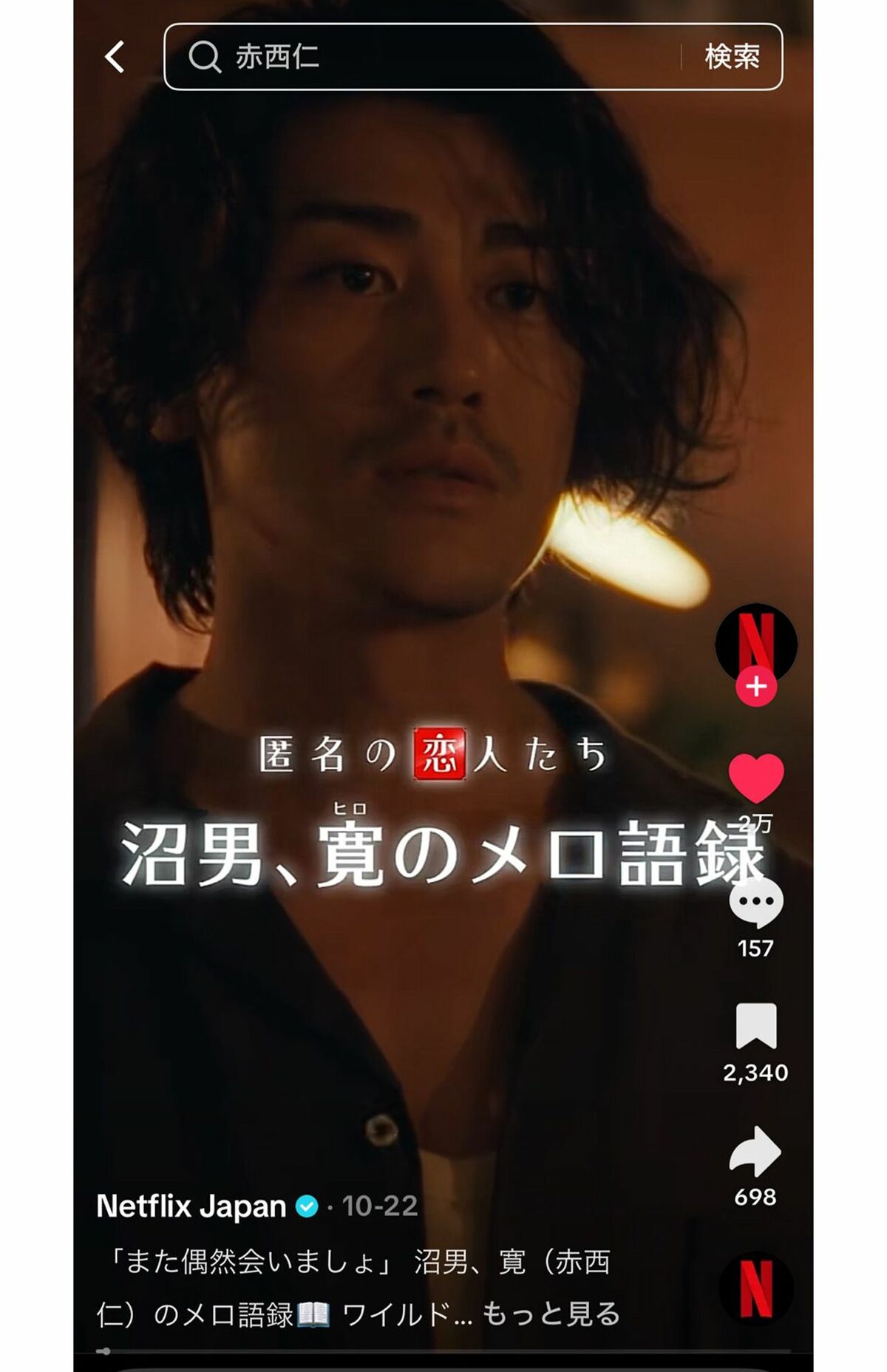 芸能 2025/11/10 Netflixドラマ『匿名の恋人たち』出演する元KAT-TUN・赤西仁の〈沼男〉が大バズり、SNS時代で支持される“ドS”な魅力 赤西仁熱愛ジャニーズジャニーズJr.男優男性アイドルNetflix小栗旬ドラマ 印刷 [写真 1/14枚目] 赤西仁 [写真 2/14枚目] 赤西仁のメロすぎる“沼落ち”シーンがまとめられた、Netflix公式TikTok [写真 3/14枚目] 赤西仁との離婚後、国内活動を精力的にこなしている黒木メイサ(公式インスタグラムより) [写真 4/14枚目] 赤西仁との離婚後、国内活動を精力的にこなしている黒木メイサ(公式インスタグラムより) [写真 5/14枚目] 赤西仁、錦戸亮の共同プロジェクトN/A(N/A公式サイトより) [写真 6/14枚目] 赤西仁と山田孝之のユニット名は『Cayme Story(ケイミーストーリー)』。人気ボーカルデュオ『CHEMISTRY(ケミストリー)」』を彷彿とさせる(赤西のインスタグラムより) [写真 7/14枚目] 2015年、赤西仁(左)がSNSに投稿した小栗旬との2SHOT [写真 8/14枚目] サントリーとタイアップした赤西仁と錦戸亮によるYouTube『NO GOOD TV』 [写真 9/14枚目] 2023年11月、『まつもtoなかい』収録を終えた赤西仁を空港でキャッチ [写真 10/14枚目] 『まつもtoなかい』で10年ぶりにテレビ出演した赤西仁(番組公式Xより) [写真 11/14枚目] 『ごくせん2』(日テレ系)で亀梨和也&赤西仁は爆発的な人気に [写真 12/14枚目] 空港内の自動販売機で、飲み物を購入する赤西仁。左手薬指につけた大きな指輪は、個性的でオシャレなデザイン [写真 13/14枚目] '12年、赤西仁の弟の誕生日を祝うために集まった“赤西軍団”。左から弟の赤西礼保、仁、山下智久 [写真 14/14枚目] 黒木メイサと赤西仁。すでに結婚10年のベテラン夫婦のふたり。赤西は今年、2年ぶりのライブの予定も!(本人のSNSより) この写真の記事へ戻る