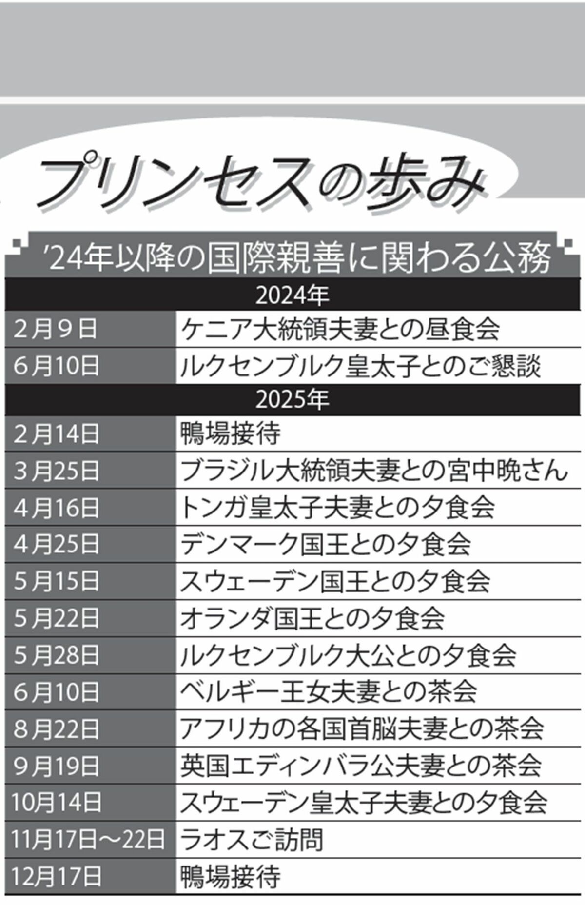 皇室 2025/12/25 愛子さま、国際親善公務が“前年比6倍”と飛躍…初の単独鴨場接待で見せた「天皇の直系として」の異次元の外交力 愛子さま雅子さま天皇陛下天皇皇后両陛下佳子さま 印刷 [写真 1/29枚目] 12月17日、初の初の単独“鴨場接待”に臨まれた愛子さま [写真 2/29枚目] 2024年以降の愛子さまの国際親善にかかわる公務 [写真 3/29枚目] 2025年2月は、いとこの佳子さまとご一緒に初めての鴨場接待に臨まれた [写真 4/29枚目] 普段の公務では淡い色味でシンプルなデザインのお洋服を着用されることが多い愛子さま [写真 5/29枚目] イルミネーションをご覧になった当時6歳の愛子さま。周囲の視線が照れ臭かったのか陛下の後ろに隠れられていた [写真 6/29枚目] 2007年12月、クリスマスを前に恵比寿ガーデンプレイスのイルミネーションへお忍びでお出ましになったご一家。陛下と愛子さまは赤のアイテムをお召しに [写真 7/29枚目] 16か国の大使らと英語を交えながら和やかに交流された [写真 8/29枚目] 12月17日、初の初の単独“鴨場接待”に臨まれた愛子さま [写真 9/29枚目] 『鴨場接待』で思わぬハプニングに見舞われた愛子さま [写真 10/29枚目] 説明者に“大丈夫ですか?”と声を掛けられる一幕も [写真 11/29枚目] 鴨を抱きかかえる愛子さま [写真 12/29枚目] この日はブラウン系のワントーンでコーディネートを統一された [写真 13/29枚目] 12月17日、初の単独での『鴨場接待』に臨まれた愛子さま [写真 14/29枚目] 左手首にはラオスの伝統儀式で付けられた“白い糸”が [写真 15/29枚目] 2006年3月、ディズニーキャラクターに興味津々の愛子さま [写真 16/29枚目] 愛子さま [写真 17/29枚目] 2003年5月、両陛下に連れられて愛子さまの公園デビュー [写真 18/29枚目] 「東京2025デフリンピック」水泳競技のメダリストに手話でお祝いを伝える天皇ご一家(2025年11月25日) [写真 19/29枚目] 2025年12月3日、昭和天皇の武蔵野陵と香淳皇后の武蔵野東陵をご参拝された愛子さま(撮影/JMPA) [写真 20/29枚目] 24歳を迎えられた愛子さまは、上皇ご夫妻にあいさつするため仙洞御所へ(撮影/JMPA) [写真 21/29枚目] 9月23日、馬事公苑で開かれた馬事芸能を広めるイベント「愛馬の日」で馬や騎手と交流された愛子さま [写真 22/29枚目] 愛子さま [写真 23/29枚目] 2009年5月、ご静養のため御料牧場に向かわれる両陛下と愛子さま。愛子さまの腕には愛犬の由莉が大切に抱えられている [写真 24/29枚目] 11月17日、「頑張ります」と笑顔を見せ、日本を発たれた愛子さま [写真 25/29枚目] 12月17日、埼玉県で鴨場接待に臨まれた愛子さま。安定感のあるもてなしぶりが話題を呼んだ [写真 26/29枚目] 12月17日、埼玉県で鴨場接待に臨まれた愛子さま。安定感のあるもてなしぶりが話題を呼んだ [写真 27/29枚目] 2025年11月、ラオス訪問中に臨まれた晩さん会ではラオス語を交えたスピーチでご挨拶 [写真 28/29枚目] 2025年は各国の賓客を多数もてなされた。アフリカ首脳との茶会(宮内庁提供) [写真 29/29枚目] 2025年は各国の賓客を多数もてなされた。ブラジル大統領との晩さん(宮内庁提供) この写真の記事へ戻る