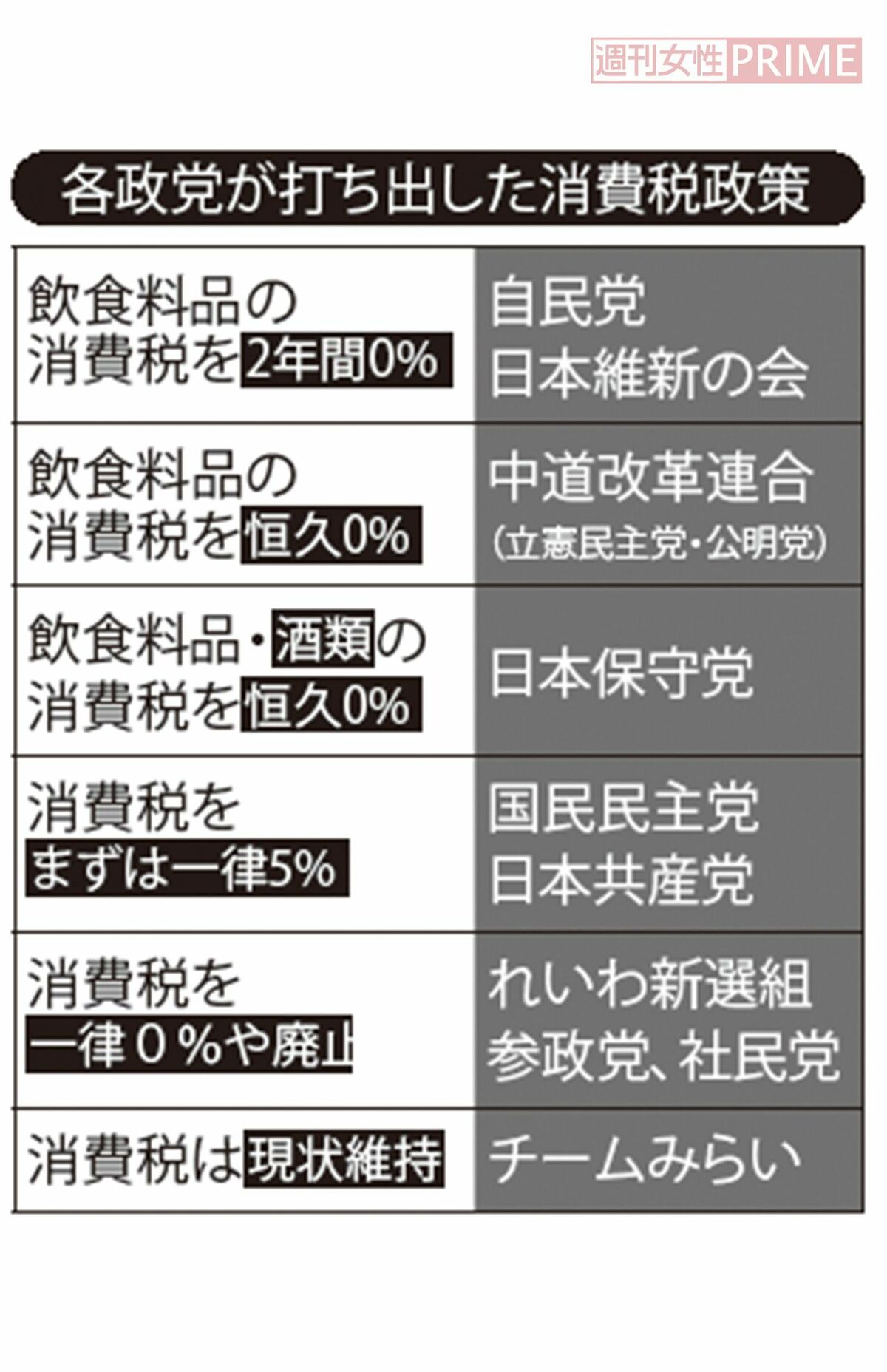 社会・事件 2026/1/27 高市早苗首相・中道改革連合らが衆院選公約に掲げる〈消費税ゼロ政策〉は物価高対策に有効なのか、税収減で更なる増税も 高市早苗消費税政治自民党政治家政治とカネ選挙野田佳彦増税 印刷 [写真 1/15枚目] 消費税ゼロを掲げる高市早苗首相、中道・野田佳彦氏 [写真 2/15枚目] 次期衆院選の公約“目玉”、各政党が掲げる消費税政策 [写真 3/15枚目] 2025年10月、「消費税負担軽減対策チーム」の立ち上げを発表した立憲民主党の野田佳彦代表(本人のXより) [写真 4/15枚目] Xで拡散されている安倍元首相の遺影を手に持つ高市首相(Xより) [写真 5/15枚目] Xで拡散されている安倍元首相の遺影を手に持つ高市首相(Xより) [写真 6/15枚目] Xで拡散されている安倍元首相の遺影を手に持つ高市首相(Xより) [写真 7/15枚目] 高市早苗首相はトランプ大統領のまるで言いなり。物価の上下もトランプ次第。ここはどこの国なのか [写真 8/15枚目] 高市早苗首相のモノマネを披露したキンタロー。(公式Xより) [写真 9/15枚目] デーモン閣下、小室哲哉、Awich、こっちのけんと、押井守、村上隆らと意見交換会を行なった高市早苗首相(本人のXより) [写真 10/15枚目] 「誤った報道を目にした」誤報を指摘した高市早苗首相の投稿(本人Xより) [写真 11/15枚目] 拡散された高市首相の切り抜き動画に付いたコメントの数々(Xより) [写真 12/15枚目] 高市早苗首相が大きく写った自民党の新しいポスター(自民党広報の公式Xより) [写真 13/15枚目] 高市早苗首相が大きく写った自民党の新しいポスター(自民党広報の公式Xより) [写真 14/15枚目] 2025年10月、高市早苗内閣のひな壇撮影後に小野田紀美経済安全保障相と言葉を交わす鈴木憲和農相 [写真 15/15枚目] 前任者の石破茂前首相も出席した表彰式。“ガラスの天井”ならぬ“相撲界の伝統”に高市早苗首相は立ち向かう? この写真の記事へ戻る