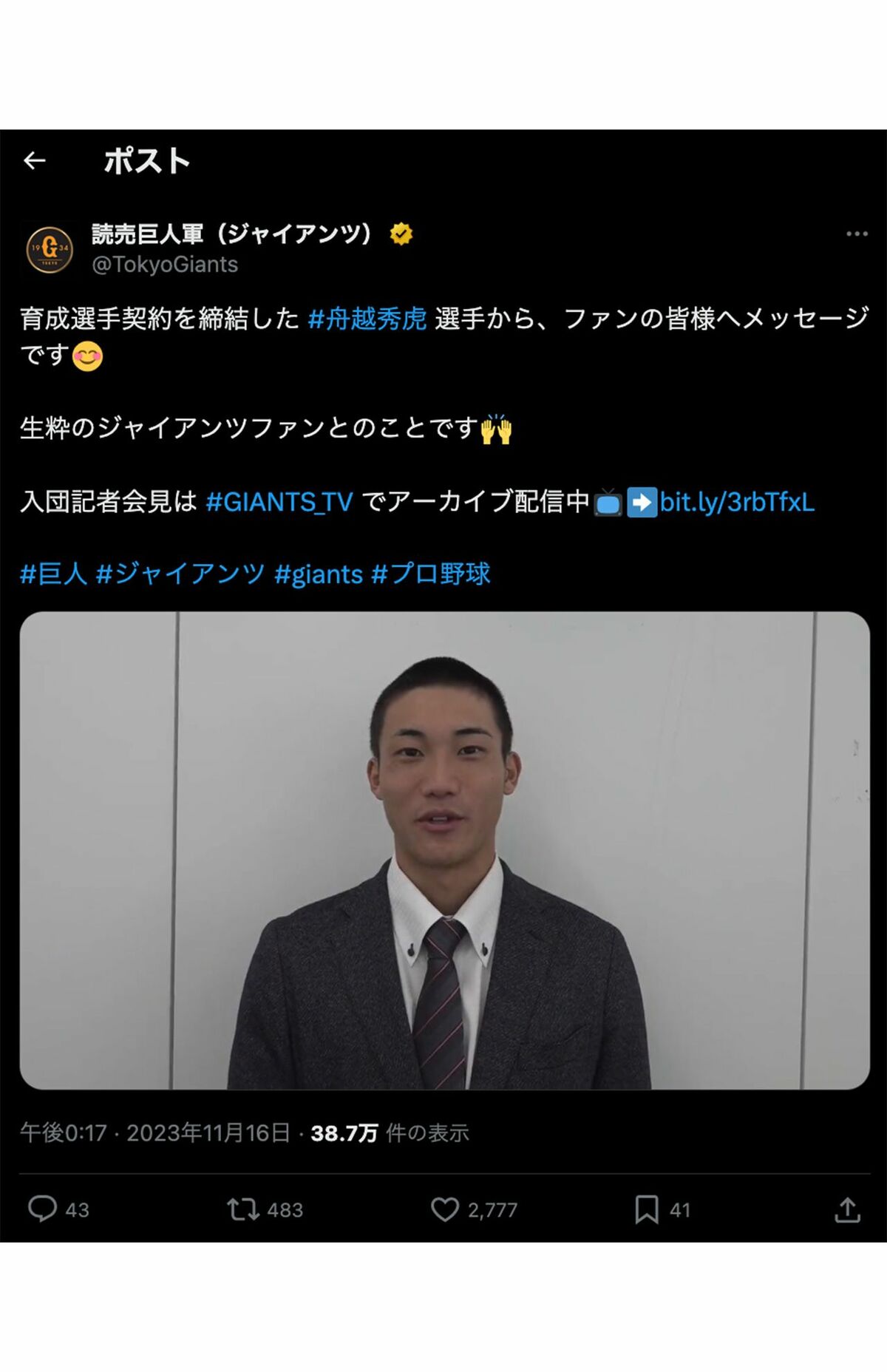 芸能 2026/1/30 【巨人】舟越秀虎のキャンプ直前の自主退団に広がる不穏、不祥事なくともチーム去る育成選手の〈年俸100分の1の現実〉 阿部慎之助読売ジャイアンツ野球スポーツ解雇佐々木朗希メジャーリーグ巨人 印刷 [写真 1/19枚目] 巨人を自主退団した舟越秀虎(公式インスタグラムより) [写真 2/19枚目] 2023年オフ、巨人入団の挨拶をしていた舟越秀虎(巨人公式Xより) [写真 3/19枚目] 広島東洋カープ・羽月隆太郎容疑者(公式インスタグラムより) [写真 4/19枚目] 広島東洋カープのチームメイトと酒盛りする羽月隆太郎容疑者(公式インスタグラムより) [写真 5/19枚目] 巨人移籍が報じられた則本昂大投手(2018年) [写真 6/19枚目] 巨人・山瀬慎之助捕手(共同通信社) [写真 7/19枚目] 巨人・山瀬慎之介捕手(公式インスタグラムより) [写真 8/19枚目] 巨人・阿部慎之助監督 [写真 9/19枚目] 巨人の戸郷翔征投手 [写真 10/19枚目] 2013年5月9日、旧読売巨人軍多摩川グラウンドに帰ってきた長嶋茂雄さん [写真 11/19枚目] '20年4月、自宅前で息子とキャッチボールや素振りをする阿部慎之助 [写真 12/19枚目] '20年4月、息子とキャッチボールや素振りをする阿部慎之助 [写真 13/19枚目] '20年4月、息子とキャッチボールや素振りをする阿部慎之助 [写真 14/19枚目] '20年4月、息子とキャッチボールや素振りをする阿部慎之助 [写真 15/19枚目] 巨人・阿部慎之助監督 [写真 16/19枚目] 田中将大の退団について《楽天は全てにおいて終わっちゃった》とコメントした、デーブ大久保こと大久保博元氏(YouTubeチャンネルより) [写真 17/19枚目] デーブ大久保のYouTubeチャンネルで語るベッキーの夫・片岡治大(公式チャンネルより) [写真 18/19枚目] 阿部慎之助監督、新庄剛志監督 [写真 19/19枚目] 読売ジャイアンツの阿部慎之助監督(左)と丸佳浩選手 この写真の記事へ戻る