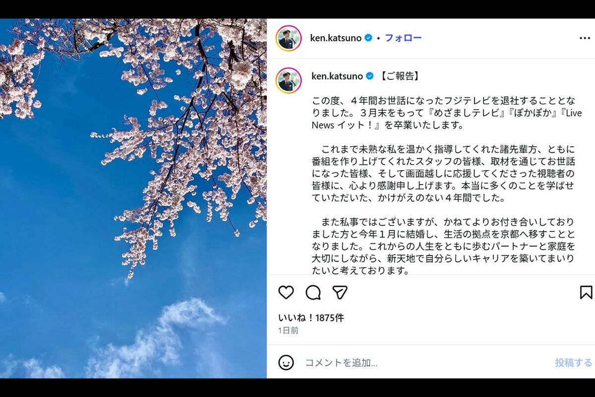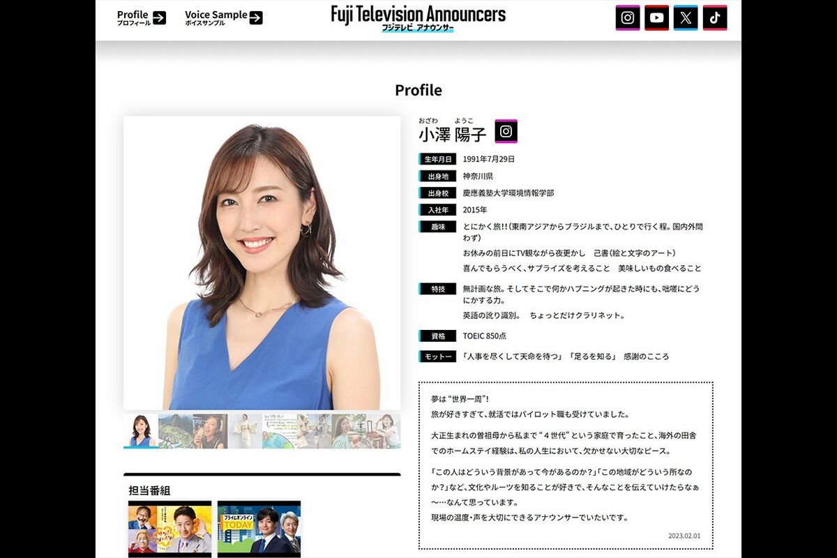 芸能 2026/3/13 フジテレビ小澤陽子アナと勝野健アナが退社で思い出される「女性アナは上質なキャバ嬢」発言のヤバさ フジテレビ中居正広アナウンサーテレビ番組 印刷 [写真 1/16枚目] 小澤陽子アナウンサー [写真 2/16枚目] なくなってほしくないフジテレビ番組ランキング※インターネットアンケートサイト『Freeasy』にて2月中旬、全国の10代〜80代の男女1000人を対象に選択方式で実施 [写真 3/16枚目] 6月にフジテレビを退社する勝野健アナウンサー(フジテレビ公式サイトより) [写真 4/16枚目] 6月にフジテレビを退社する小澤陽子アナウンサー(フジテレビ公式サイトより) [写真 5/16枚目] SNSで退社を報告した小澤陽子アナウンサー(本人Instagramより) [写真 6/16枚目] 2025年3月にフジテレビを退社した永島優美(写真/本誌写真班) [写真 7/16枚目] SNSで退社を報告した勝野健アナウンサー(本人Instagramより) [写真 8/16枚目] 2025年3月にフジテレビを退社した椿原慶子(本人Instagramより) [写真 9/16枚目] 2025年6月にフジテレビを退社した岸本理沙(フジテレビアナウンサー公式Instagramより) [写真 10/16枚目] 2025年12月にフジテレビを退社した藤本万梨乃(本人Instagramより) [写真 11/16枚目] 中居正広氏をめぐる一連の報道を受け、2025年1月27日に記者会見を開いたフジテレビ(写真/本誌写真班) [写真 12/16枚目] 中居正広氏をめぐる一連の報道を受け、2025年1月27日に記者会見を開いたフジテレビ(写真/本誌写真班) [写真 13/16枚目] 中居正広氏をめぐる一連の報道を受け、引責辞任した港浩一前社長(写真/本誌写真班) [写真 14/16枚目] フジテレビ(写真/本誌写真班) [写真 15/16枚目] 2024年末、女性トラブルが報じられた中居正広氏(写真/本誌写真班) [写真 16/16枚目] 2024年末、女性トラブルが報じられた中居正広氏(写真/本誌写真班) この写真の記事へ戻る