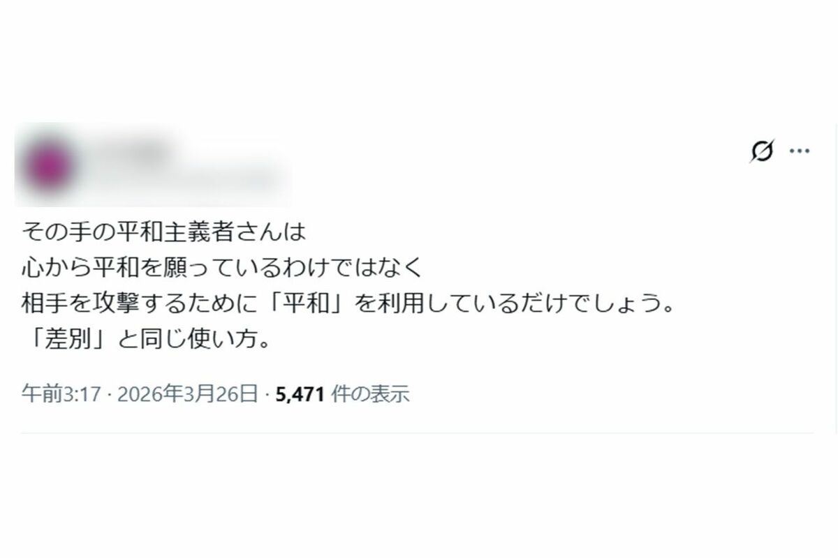 芸能 2026/3/28 漫画家・倉田真由美「どんな平和主義者?」“反戦主義者の中の攻撃性”を指摘してSNS議論沸騰 漫画家戦争SNS文化人 印刷 [写真 1/9枚目] 倉田真由美さん [写真 2/9枚目] 倉田真由美「マンガを読む人たちは、実はバイリンガル」 [写真 3/9枚目] さまざまな意見を呼び起こした倉田真由美氏の投稿(氏のXより) [写真 4/9枚目] 倉田真由美氏の投稿に対するさまざまな意見 ※編集部で画像を一部加工しています [写真 5/9枚目] 倉田真由美氏の投稿に対するさまざまな意見 ※編集部で画像を一部加工しています [写真 6/9枚目] 2025年10月28日、迎賓館赤坂離宮にて日米首脳会談の署名式を行ったトランプ大統領と高市早苗首相 撮影/JMPA [写真 7/9枚目] 体を寄せトランプ大統領と仲睦まじい様子の高市首相(高市首相本人Xより) [写真 8/9枚目] 共同文書に署名する高市総理(右)とアメリカのトランプ大統領(2025年10月28日) [写真 9/9枚目] 高市早苗首相と握手を交わすトランプ大統領(首相官邸公式HPより) この写真の記事へ戻る