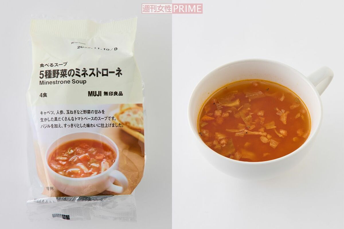 ライフ 2026/4/12 《無印良品“スープ”ランキング》売り場拡大で話題!マニアがおすすめするフリーズドライ・レトルト・味噌汁部門の1位は 料理ランキングチェーン店期間限定 印刷 [写真 1/14枚目] 無印良品スープ食べ比べ [写真 2/14枚目] 実食の様子 [写真 3/14枚目] 北海道産玉ねぎのオニオンスープ [写真 4/14枚目] ユッケジャンスープ [写真 5/14枚目] 5種野菜のミネストローネ [写真 6/14枚目] コムタンスープ [写真 7/14枚目] オクラ入りねばねば野菜のスープ [写真 8/14枚目] 素材を生かしたスープ海老のビスク [写真 9/14枚目] 1/3日分の野菜を使ったトマトスープ [写真 10/14枚目] 素材を生かしたスープポルチーニクリームのポタージュ [写真 11/14枚目] あさりと長ねぎ [写真 12/14枚目] 揚げ茄子とほうれん草 [写真 13/14枚目] 豚汁 フリーズドライ [写真 14/14枚目] 松永りえさん●整理収納アドバイザーの資格取得を機に、自宅の収納や家具を無印良品でそろえ始め、店に通い詰めるうちに無印マニアに。2016年、熊本地震で被災したことで、防災士の資格を取得。現在、防災収納インストラクターとして活躍し、無印良品で防災セミナーなども行う。無印良品のスープは、防災用の非常食としてもすすめている。 この写真の記事へ戻る