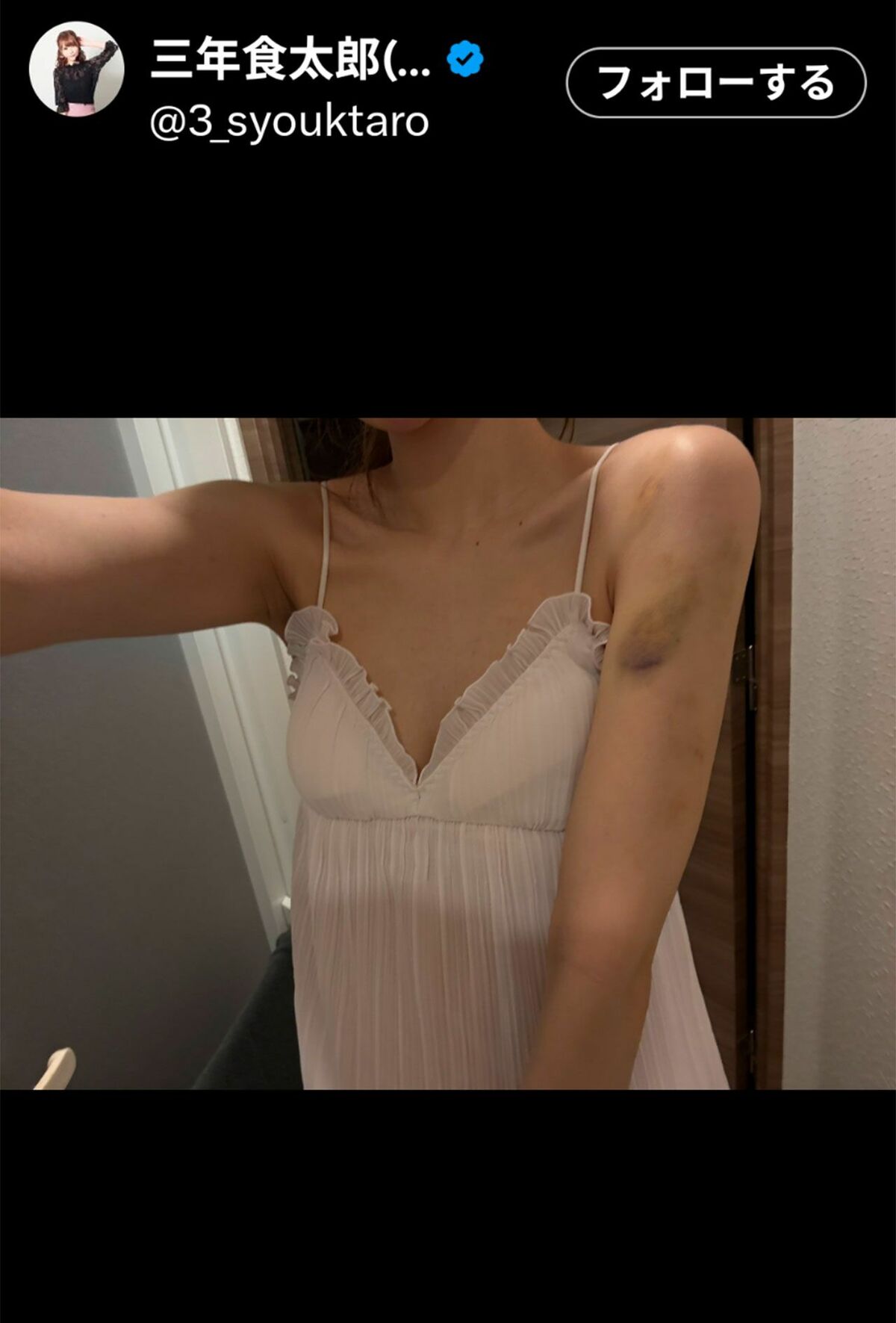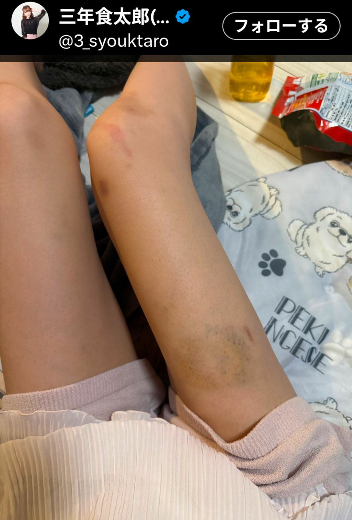 芸能 2026/4/7 フォロワー60万人超えの大食いYouTuber三年食太郎、全身あざだらけの姿を投稿して心配の声殺到 YouTubeYouTuberSNSDV暴力 印刷 [写真 1/14枚目] 大食いYouTuberの三年食太郎(本人のインスタグラムより) [写真 2/14枚目] アンジェラさんはYouTubeチャンネルで、北海道の大食い王出身者と大食い対決を披露 [写真 3/14枚目] 『元祖!大食い王決定戦』での1コマ [写真 4/14枚目] 「もう大食いには出ないの?」とお客さんからはよく聞かれる [写真 5/14枚目] あざが痛々しい大食いYouTuberの三年食太郎(本人のXより) [写真 6/14枚目] あざが痛々しい大食いYouTuberの三年食太郎(本人のXより) [写真 7/14枚目] あざが痛々しい大食いYouTuberの三年食太郎(本人のXより) [写真 8/14枚目] あざが痛々しい大食いYouTuberの三年食太郎(本人のXより) [写真 9/14枚目] あざが痛々しい大食いYouTuberの三年食太郎(本人のXより) [写真 10/14枚目] 食べ方が汚いと物議を醸した『最強大食い王決定戦2025』(テレビ東京公式Xより) [写真 11/14枚目] 食べ方が汚いと物議を醸した『最強大食い王決定戦2025』(テレビ東京公式Xより) [写真 12/14枚目] 大食いYouTuberのはらぺこツインズ(本人のインスタグラムより) [写真 13/14枚目] 疑惑が持ち上がっている大食いYouTuber・食の変態(本人のXより) [写真 14/14枚目] 大食い系ユーチューブチャンネルも乱立している。『おごせ綾チャンネル』より この写真の記事へ戻る