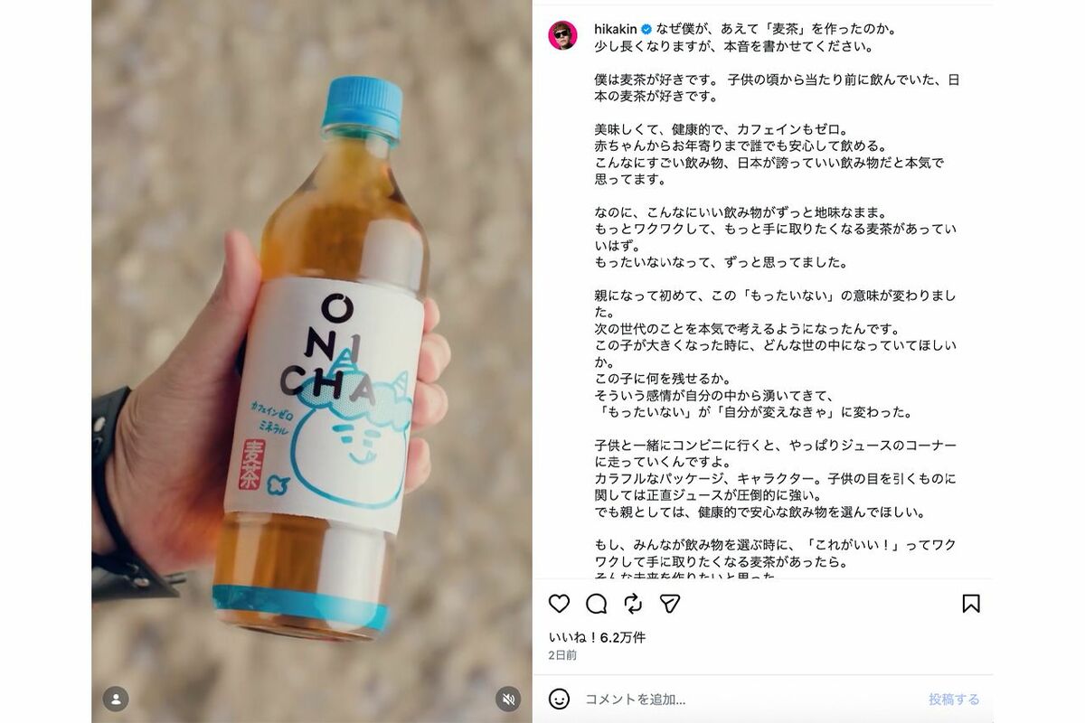 芸能 2026/4/7 YouTuber・ヒカキンがプロデュース麦茶『ONICHA』発表の翌日にコカ・コーラが『クレヨンしんちゃん』コラボボトル販売で“麦茶戦争”勃発へ HIKAKINYouTuberYouTubeラーメン炎上流行ビジネスInstagram 印刷 [写真 1/24枚目] YouTuber・ヒカキン [写真 2/24枚目] ヒカキンがプロデュースした麦茶ブランド『ONICHA』(公式インスタグラムより) [写真 3/24枚目] ヒカキンがプロデュースした麦茶ブランド『ONICHA』(公式インスタグラムより) [写真 4/24枚目] 批判が殺到しているヒカキンの投稿(本人のXより) [写真 5/24枚目] ヒカキンが令和ロマンに用意した“金箔寿司”(ヒカキンのYouTubeより) [写真 6/24枚目] ヒカキンが令和ロマンに用意した高級ワインのロマネ・コンティ(ヒカキンのYouTubeより) [写真 7/24枚目] ヒカキンが投稿したセブンイレブンの弁当の比較。2012年とでは価格が異なるヒカキンのYouTubeより) [写真 8/24枚目] 2012年に自身が投稿した動画を“完全再現”したヒカキン(ヒカキンのYouTubeより) [写真 9/24枚目] コカ・コーラシステムが展開する、『クレヨンしんちゃん』とコラボした『やかんの麦茶from爽健美茶』(公式HPより) [写真 10/24枚目] 『みそきん』シリーズ(公式YouTubeチャンネルより) [写真 11/24枚目] フリマアプリやオークションサイトで高額で転売される『みそきん』シリーズ [写真 12/24枚目] ヒカキンから贈られた『みそきん』グッズを披露するあの(公式ツイッターより) [写真 13/24枚目] 『みそきん』の再販決定を報告するHIKAKIN(公式YouTubeチャンネルより) [写真 14/24枚目] 『みそきん』を求める視聴者に再販まで待つよう呼びかけたHIKAKIN(公式YouTubeチャンネルより) [写真 15/24枚目] インスタグラマーの小澤美里(本人のインスタグラムより) [写真 16/24枚目] 結婚を発表したインスタグラマーの小澤美里(本人のインスタグラムより) [写真 17/24枚目] インスタグラマーの小澤美里(本人のインスタグラムより) [写真 18/24枚目] 2020年5月、ヒカキンのYouTube動画を引用して感謝を伝えた粗品(公式Xより) [写真 19/24枚目] ヒカキンが令和ロマンにお揃いのロレックスをプレゼント(ヒカキンのYouTubeより) [写真 20/24枚目] 令和ロマンに総額1500万円のプレゼントをしたヒカキン(ヒカキンのYouTubeより) [写真 21/24枚目] ヒカキンが令和ロマンに用意した高級ワインのロマネ・コンティ(ヒカキンのYouTubeより) [写真 22/24枚目] 妻が指にけがを負ったことを報告したヒカキン(本人YouTubeチャンネルより) [写真 23/24枚目] 妻が指にけがを負ったことを報告したヒカキン(本人YouTubeチャンネルより) [写真 24/24枚目] 『みそきん』について「できる限りの量を全力で用意する」と宣言したHIKAKIN(公式YouTubeチャンネルより) この写真の記事へ戻る