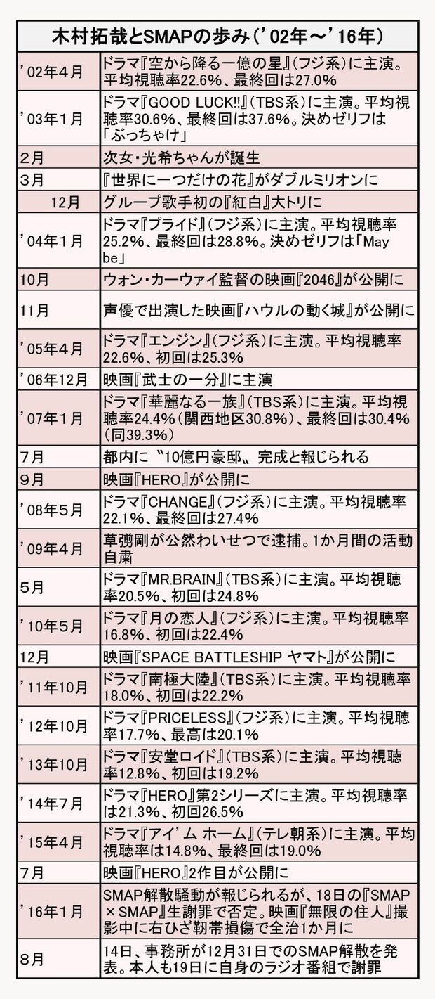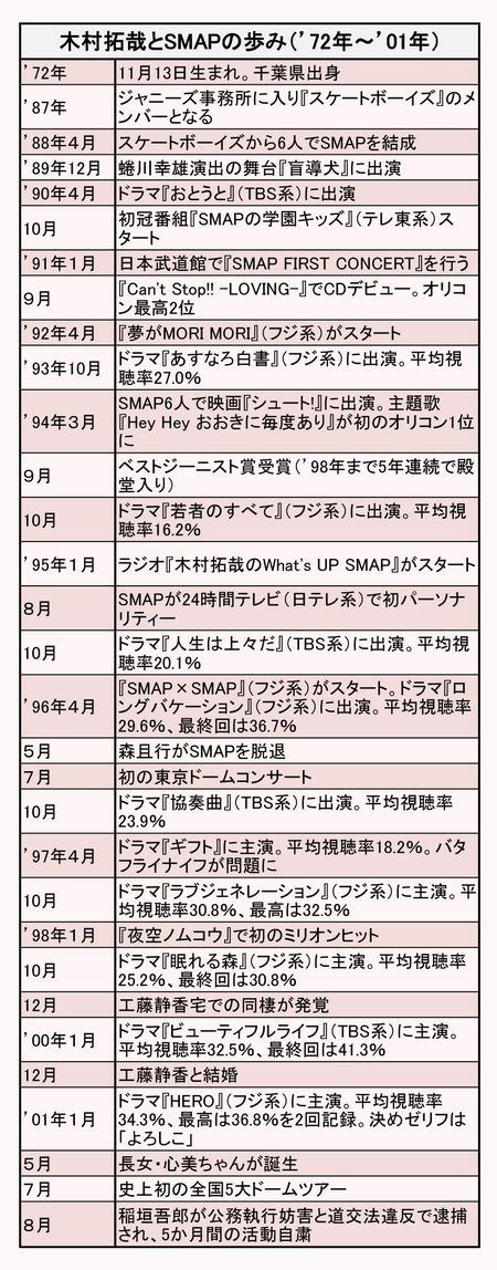 ジャニーズ 2016/9/21 木村拓哉は正義漢か生意気か 元マネが指摘した「不器用さ」とSMAP解散 木村拓哉草なぎ剛稲垣吾郎香取慎吾中居正広ジャニー喜多川SMAP解散メリー喜多川ジュリーI女史 『週刊女性』編集部 印刷 [写真 1/7枚目] '93年、取手治役を演じてブレイクした『あすなろ白書』の現場 [写真 2/7枚目] [写真 3/7枚目] 「僕、メガネが似合うんですよ」と木村拓哉 [写真 4/7枚目] 結婚15周年迎える木村拓哉&静香夫婦 [写真 5/7枚目] 解散発表後、家族とのハワイ旅行から帰国した木村(8月22日) [写真 6/7枚目] [写真 7/7枚目] この写真の記事へ戻る