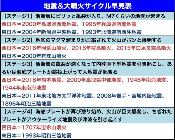 社会・事件 2016/11/5 高橋教授が指摘「西日本の地震の“クセ”は西から東へ。次は鳥取の東が危ない」 地震噴火 『週刊女性』編集部 印刷 [写真 1/3枚目] 鳥取県中部で起きた地震で倒壊した家屋(共同通信ヘリから撮影) [写真 2/3枚目] [図]西日本と東日本の地震のクセ [写真 3/3枚目] この写真の記事へ戻る