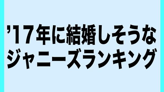 ジャニーズ 2016/12/29 「'17年に結婚しそうなジャニーズ」ランキング、トップはもちろんアノ人 ランキングジャニーズ事務所結婚 印刷 [写真 1/2枚目] [写真 2/2枚目] *当アンケートは30歳以上のジャニーズのメンバーを対象にしています *クリックすると画像がポップアップします この写真の記事へ戻る